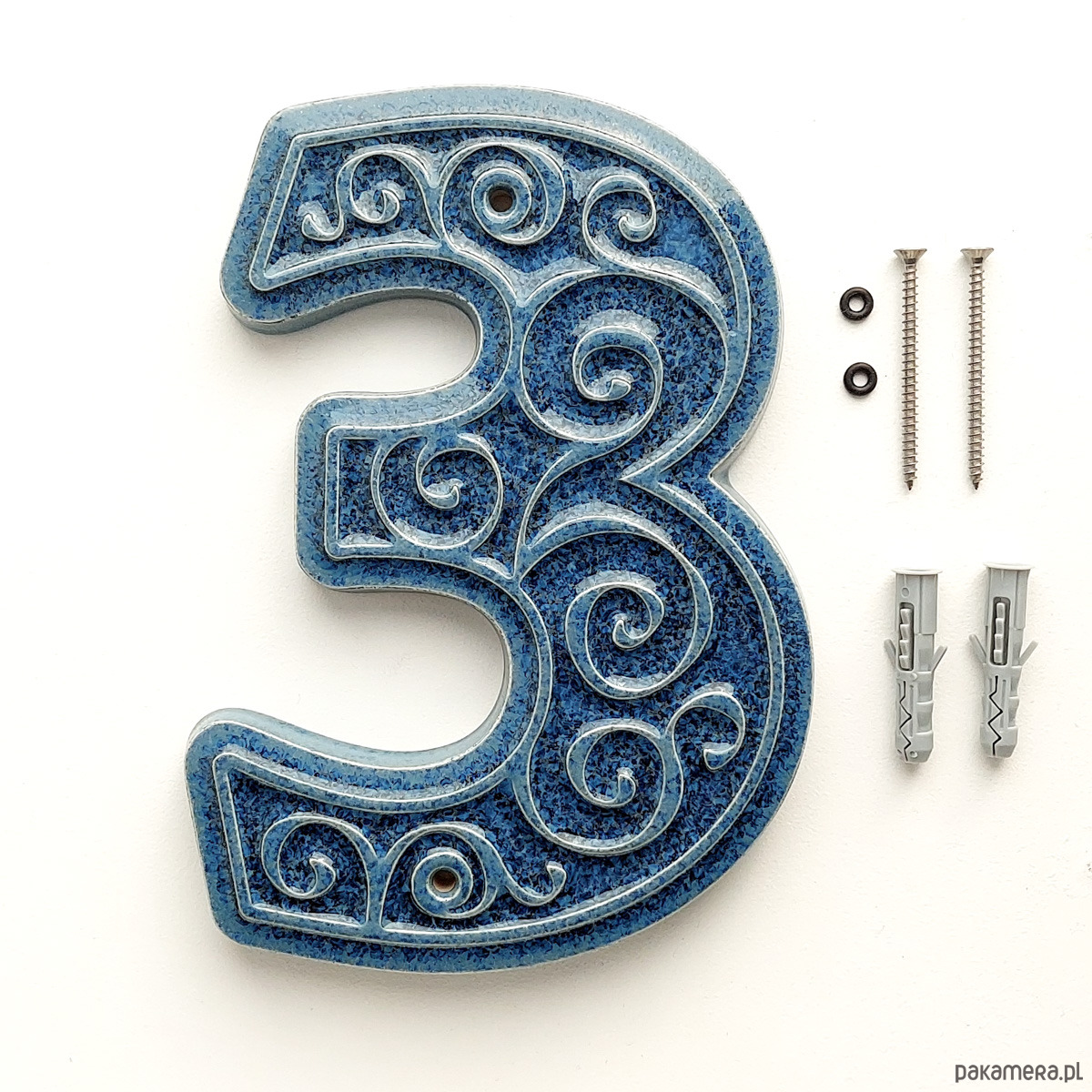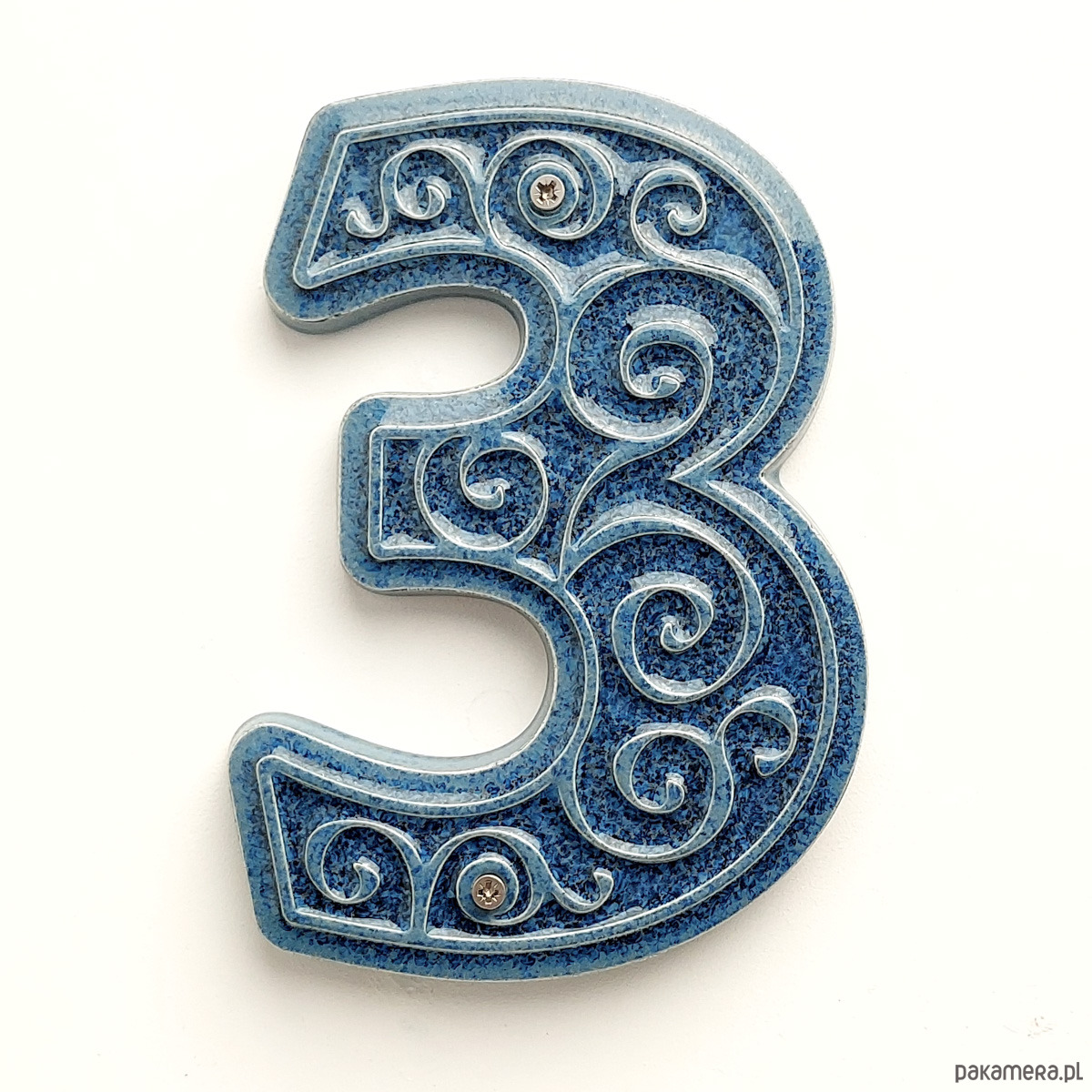 Numer domu, cyfra 3, szaroniebieska do zawieszenia