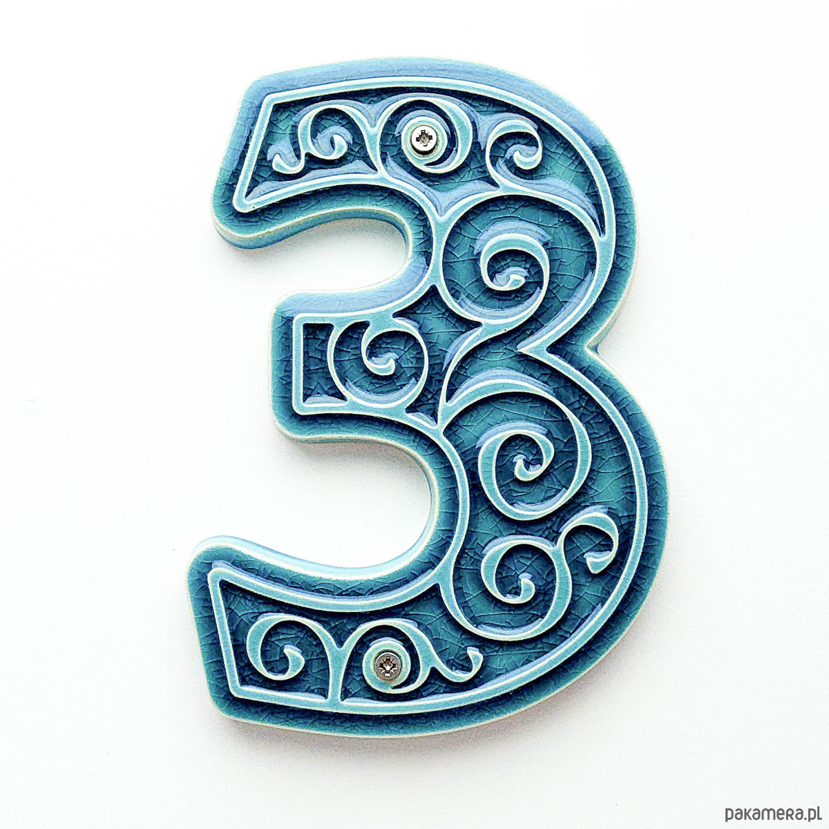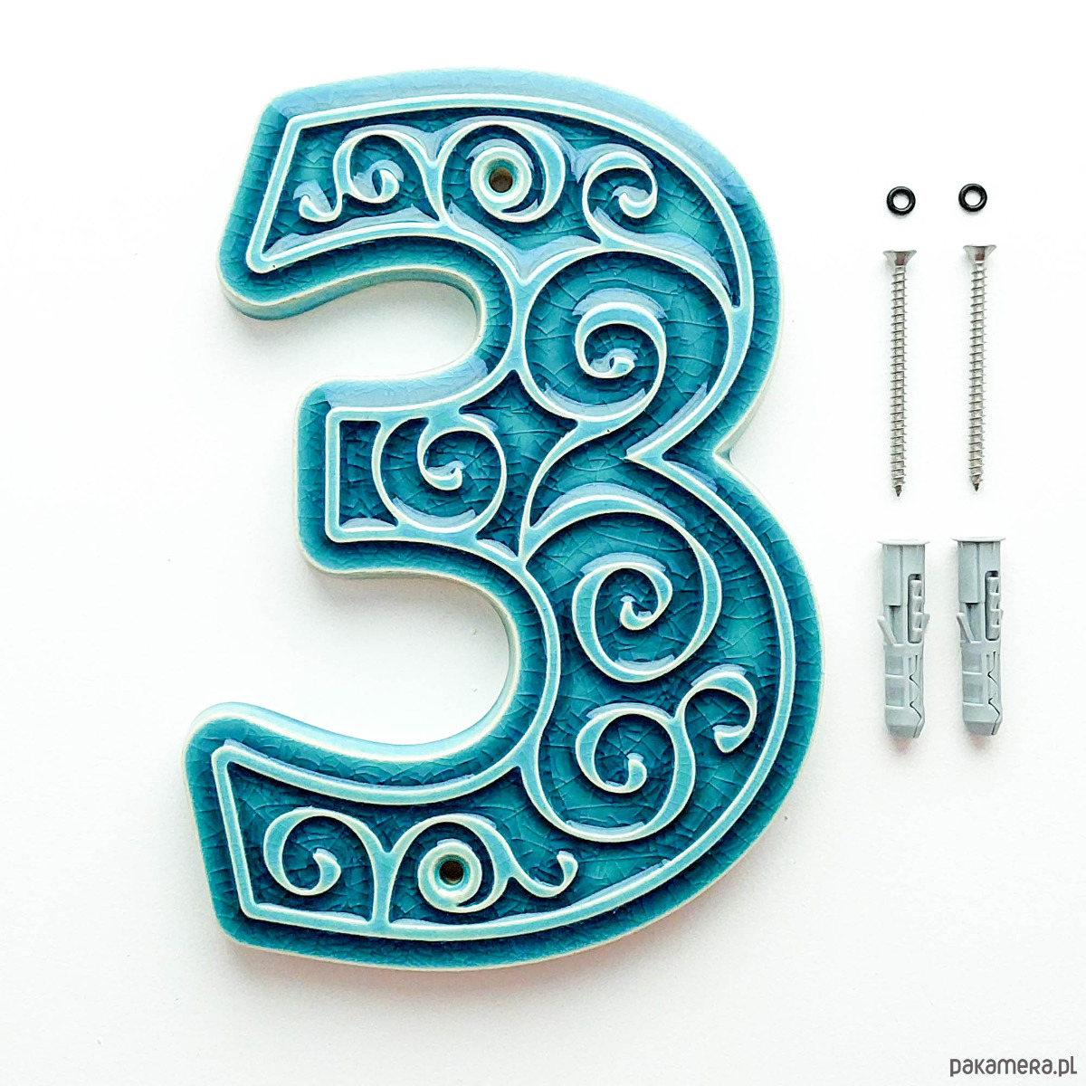 Numer domu, cyfra 3 turkusowa, do zawieszenia