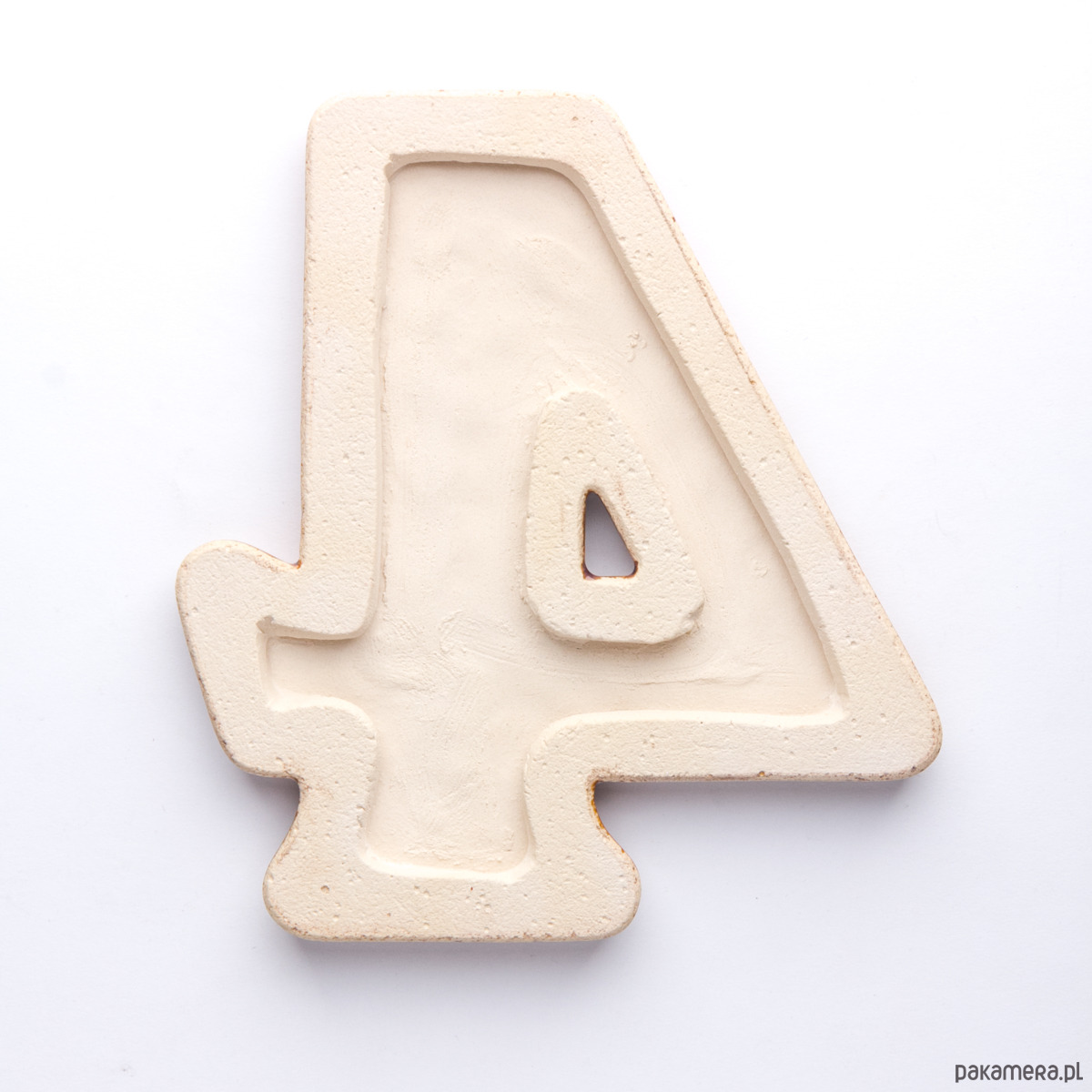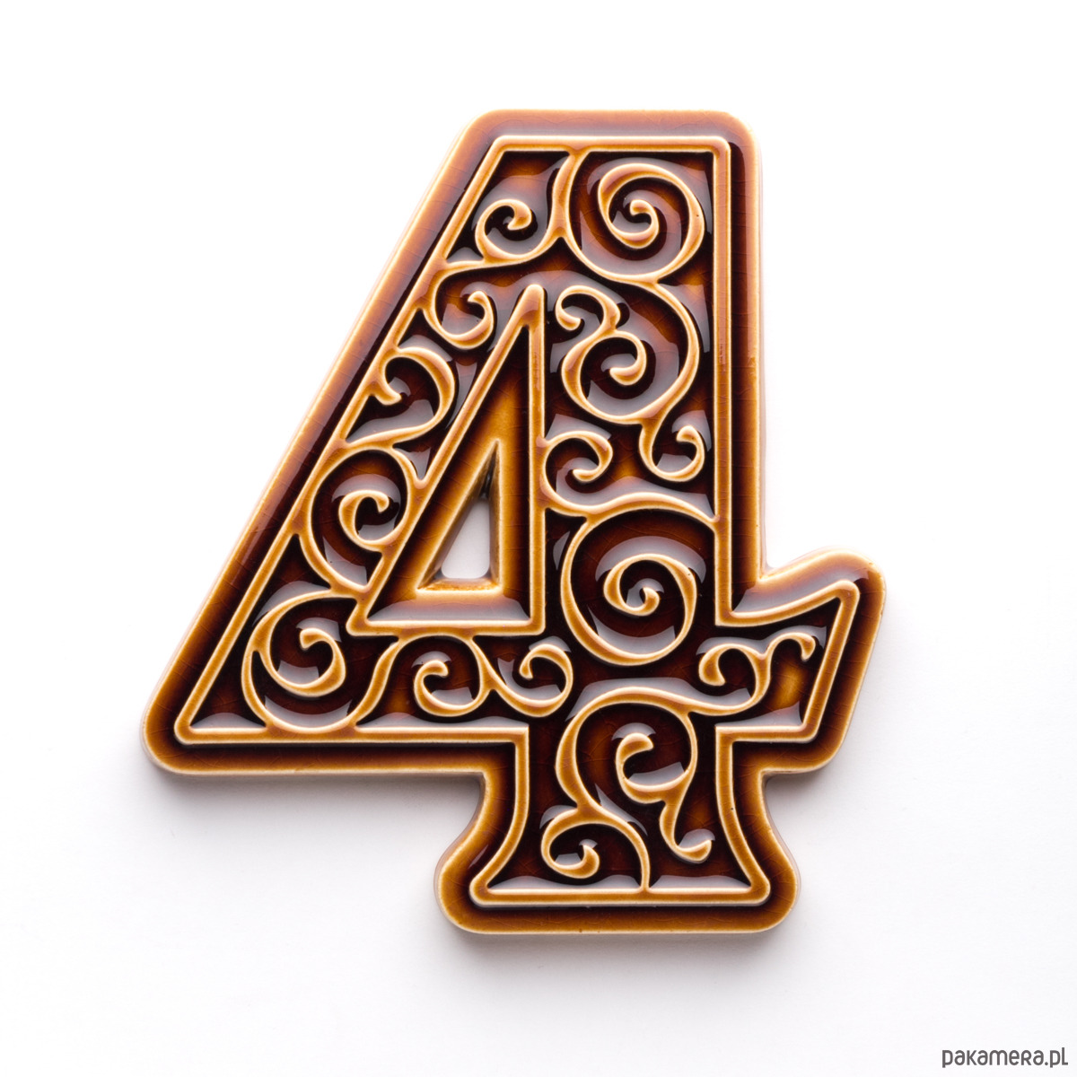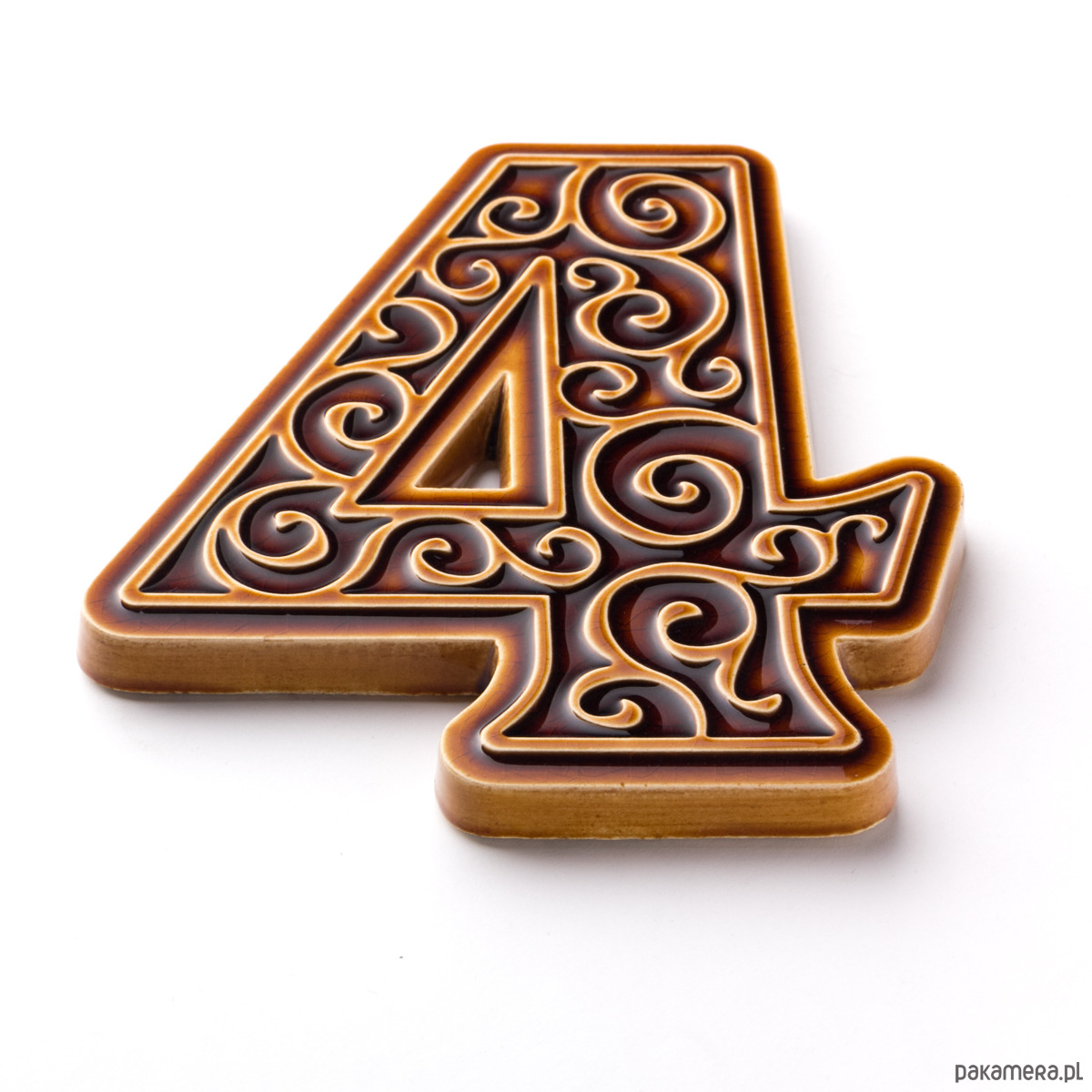 Ceramiczna cyfra 4 z ozdobnym, lekko wypukłym ornamentem, do zamocowania na elewacji budynku. Wykonana z jasnej gliny, pokryta błyszczącym szkliwem, wypalona dwukrotnie w wysokiej temperaturze. Do klejenia cyfry można stosować kleje montażowe odporne na działanie warunków atmosferycznych. Unieruchomienie cyfry na czas schnięcia kleju umożliwia krawędziowy kołnierz od spodu cyfry. Polecam serdecznie.
