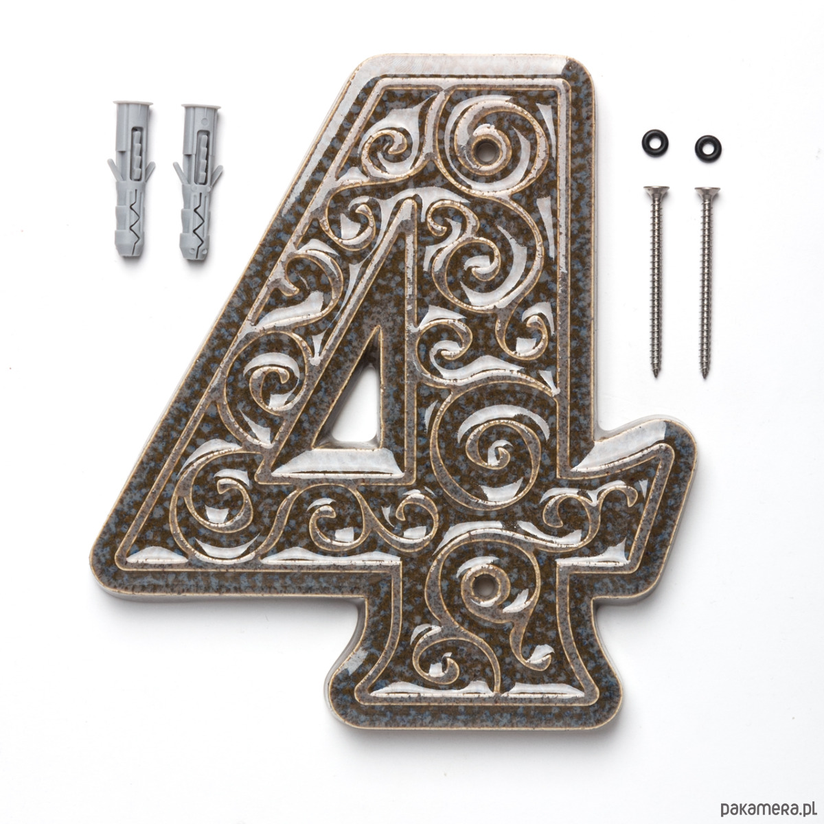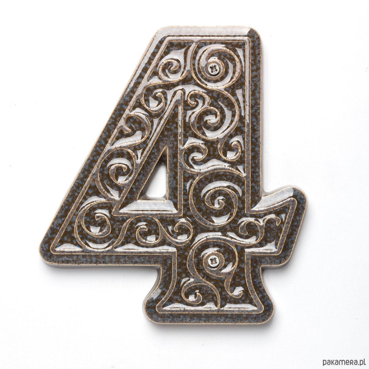 Numer domu cyfra 4 szaro-brązowa, do zawieszenia