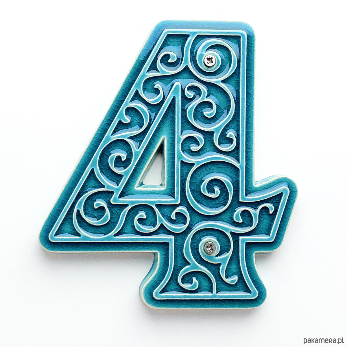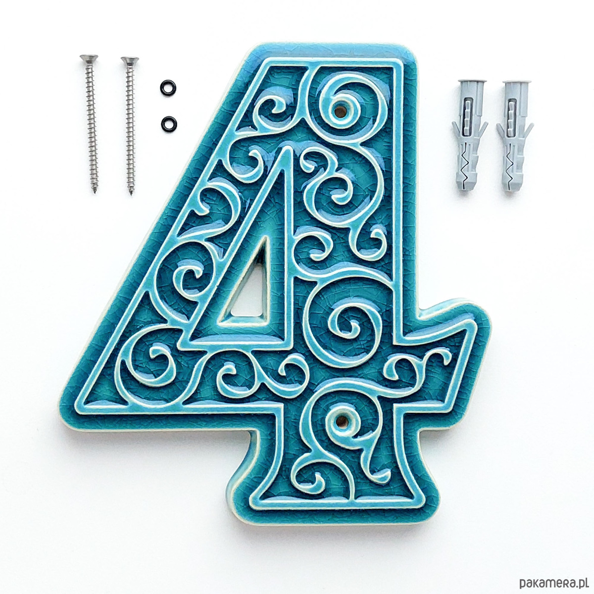 Numer domu, cyfra 4 turkusowa, do przykręcenia