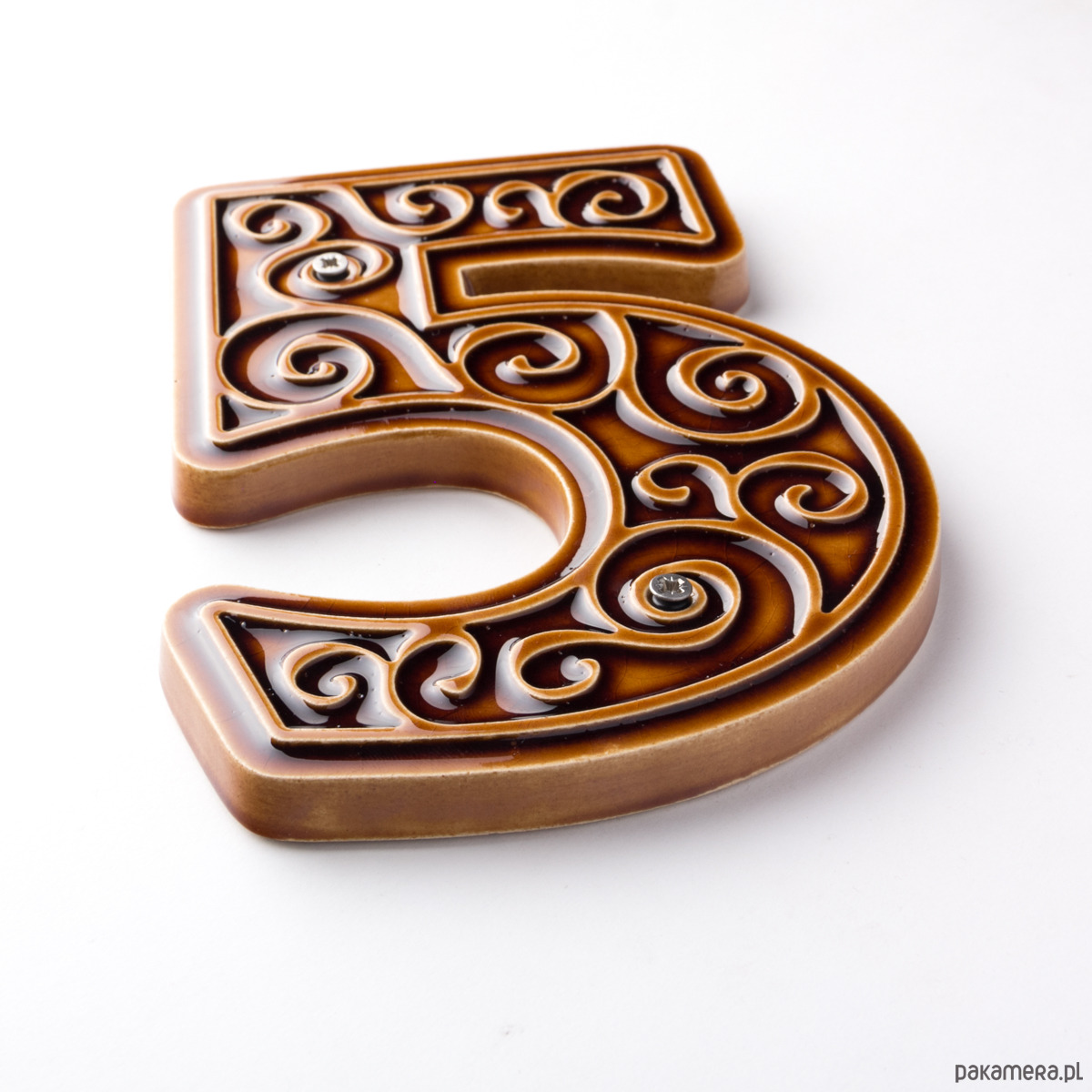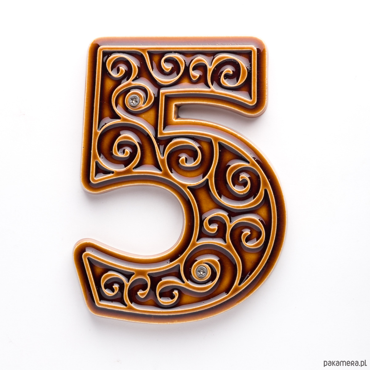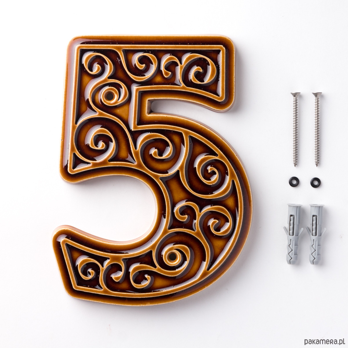 Numer domu, cyfra 5 miodowo-brązowa, do przykręcenia