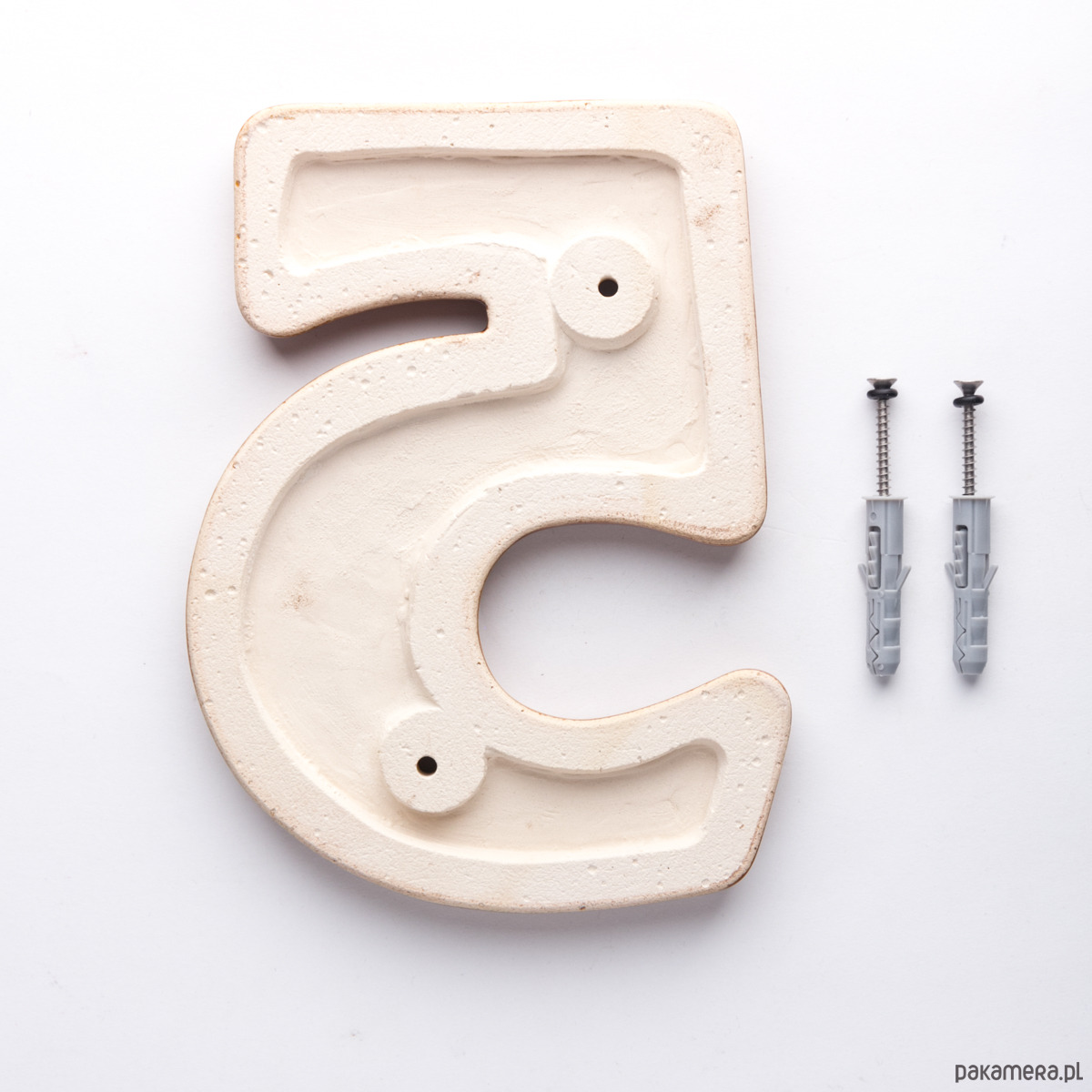 – dwie koszulki do kołków rozporowych abyś mógł przykręcić cyfrę do powierzchni budynku np mur z cegły, betonu, pustaków i.t.p. (oczywiście w przypadku montażu do drewna koszulki są zbyteczne, bo używasz tylko metalowych wkrętów)