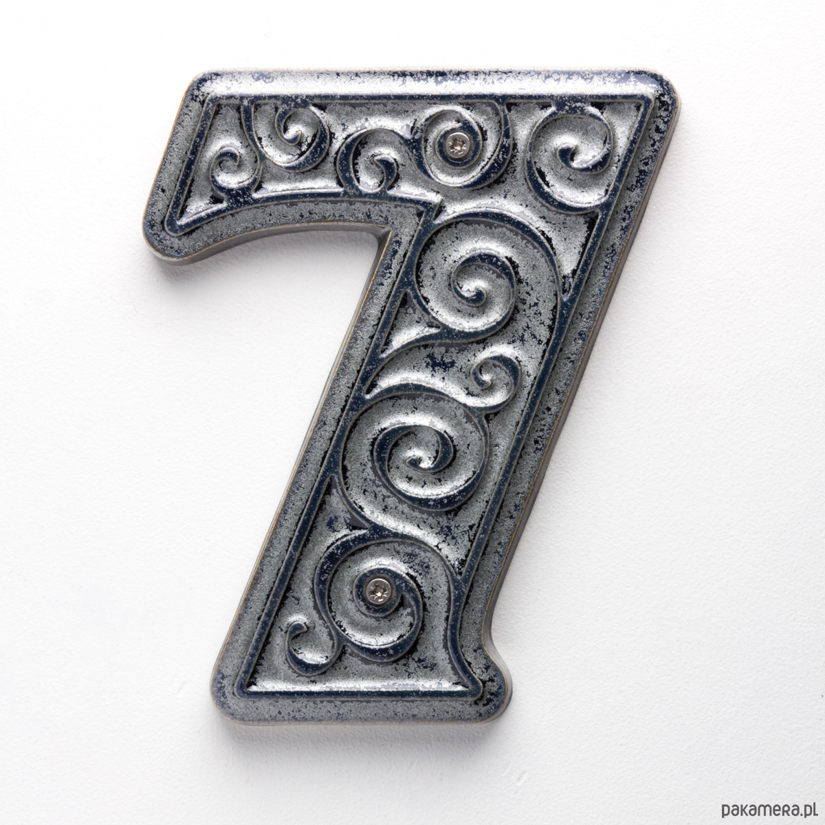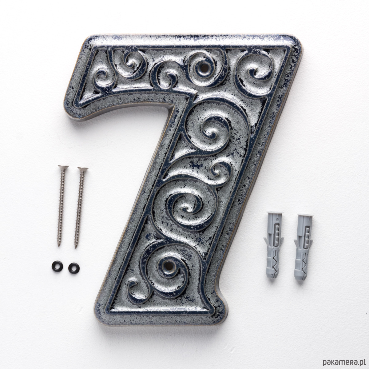 Numer domu, cyfra 7, srebrno-granatowa, do przykręcenia
