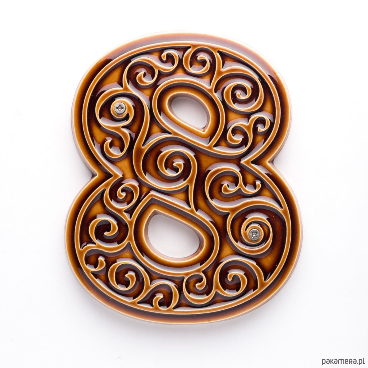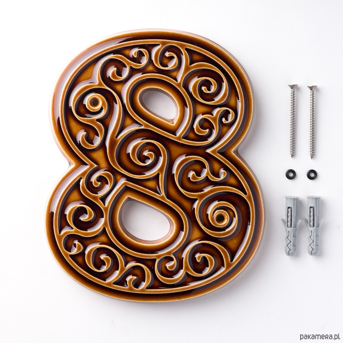 Numer domu, cyfra 8 brązowo-miodowa, do przykręcenia
