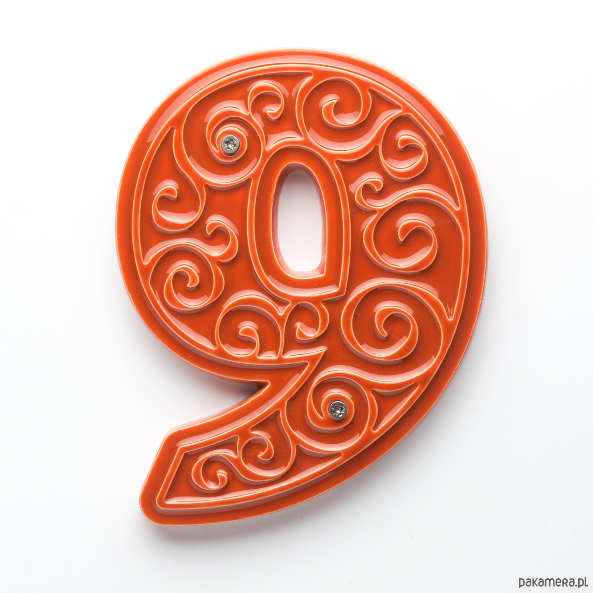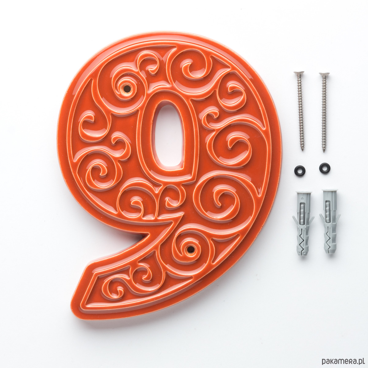 Numer domu, cyfra 9 pomarańczowo-brązowa, do przykręcenia