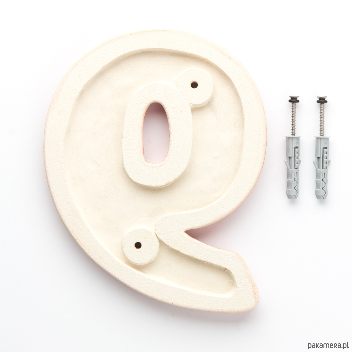 Ceramiczna cyfra z lekko wypukłym, dekoracyjnym ornamentem. Ręcznie wykonana z jasnej gliny, pokryta błyszczącym szkliwem. Dwukrotnie wypalana w wysokiej temperaturze.