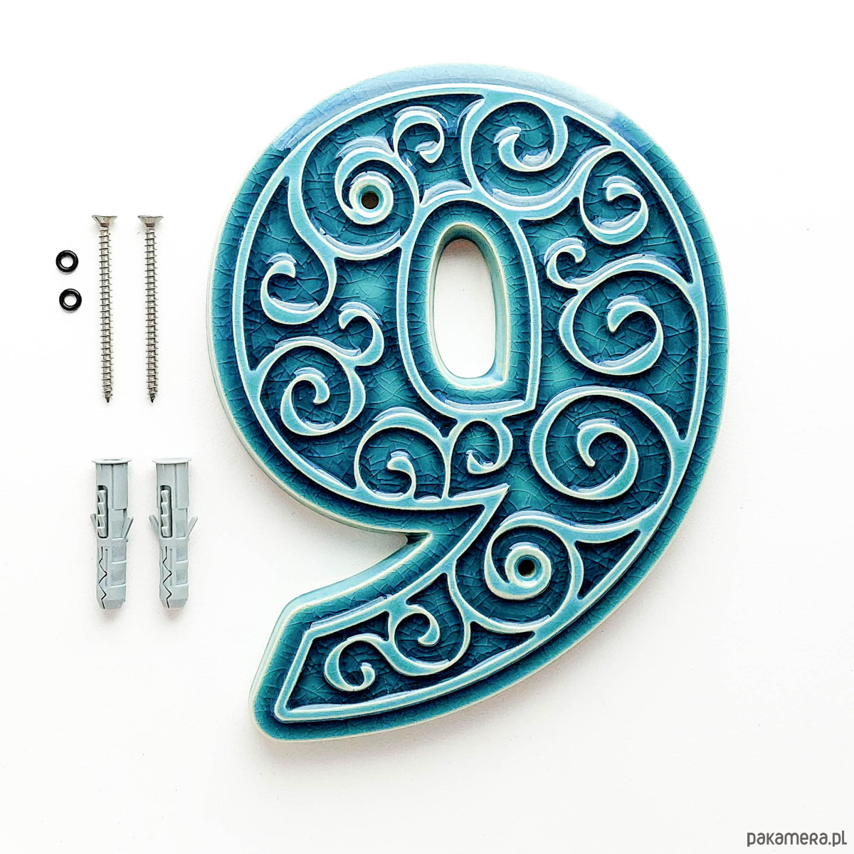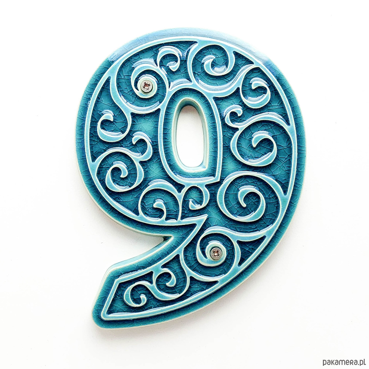 Numer domu, cyfra 9 turkusowa, do zawieszenia
