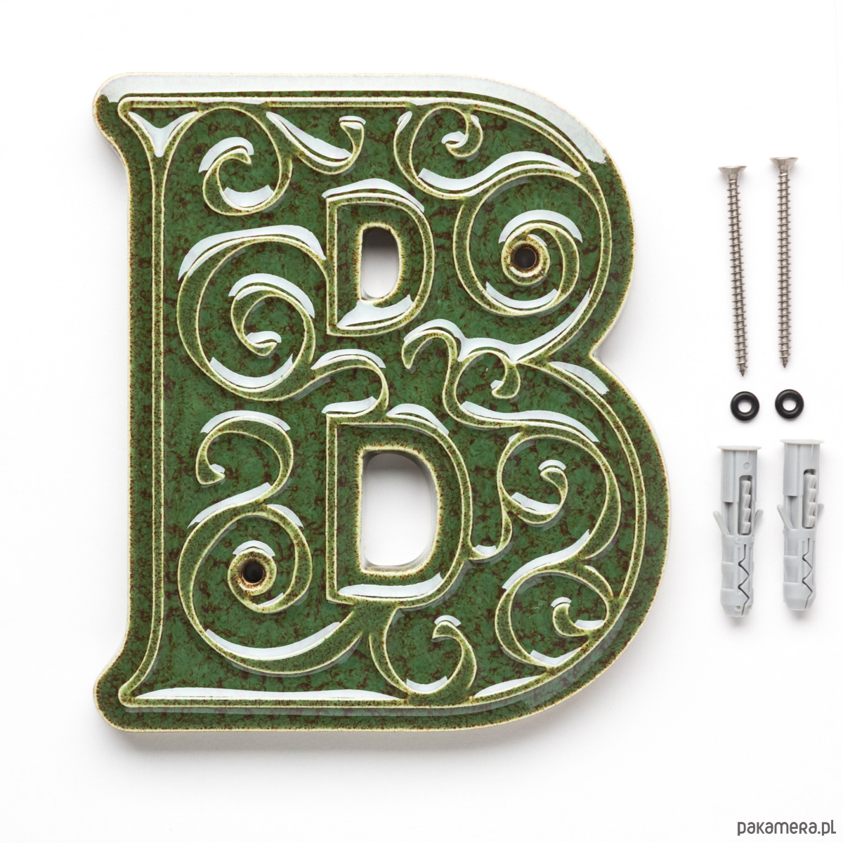 Numer domu, litera B zielono-brązowa, do przykręcenia