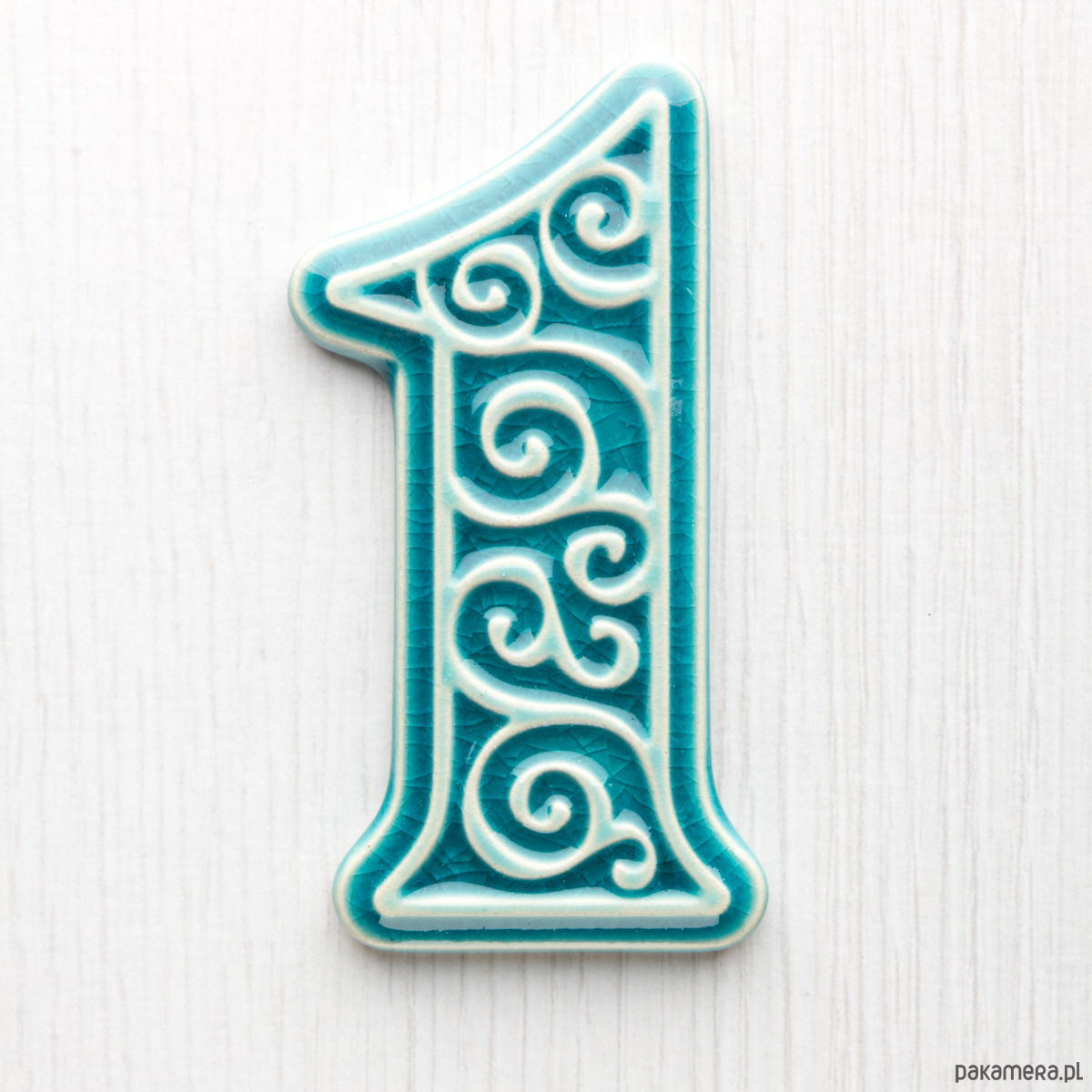Numer mieszkania - ceramiczna cyfra 1 turkusowa wys.8cm