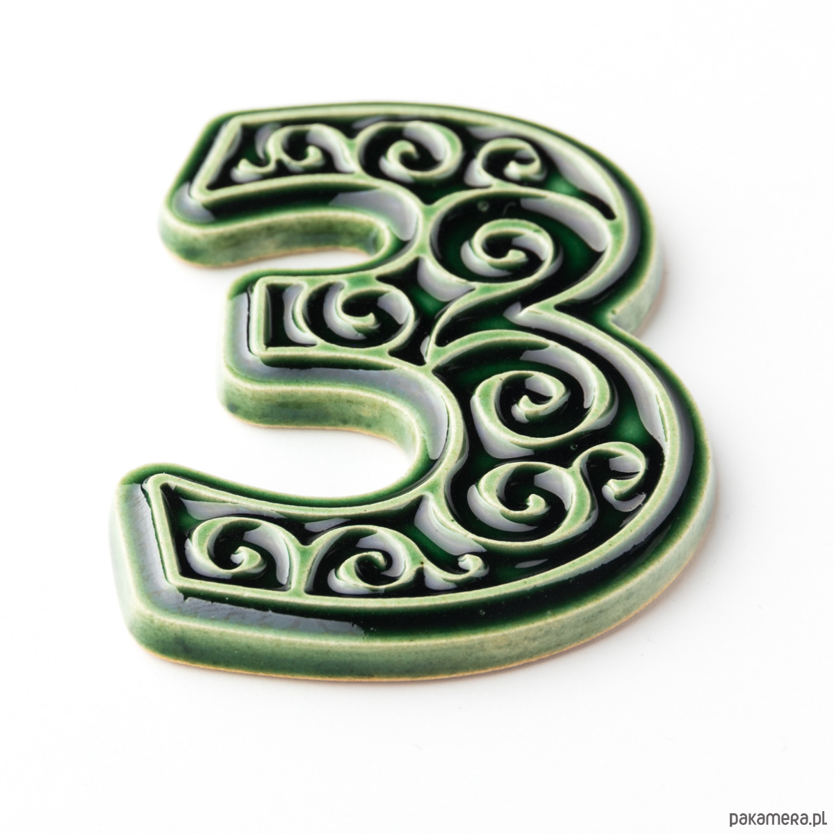 Numer mieszkania, cyfra 3 zieleń butelkowa, wysokość 8 cm