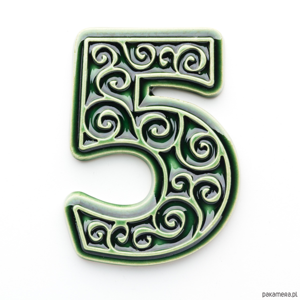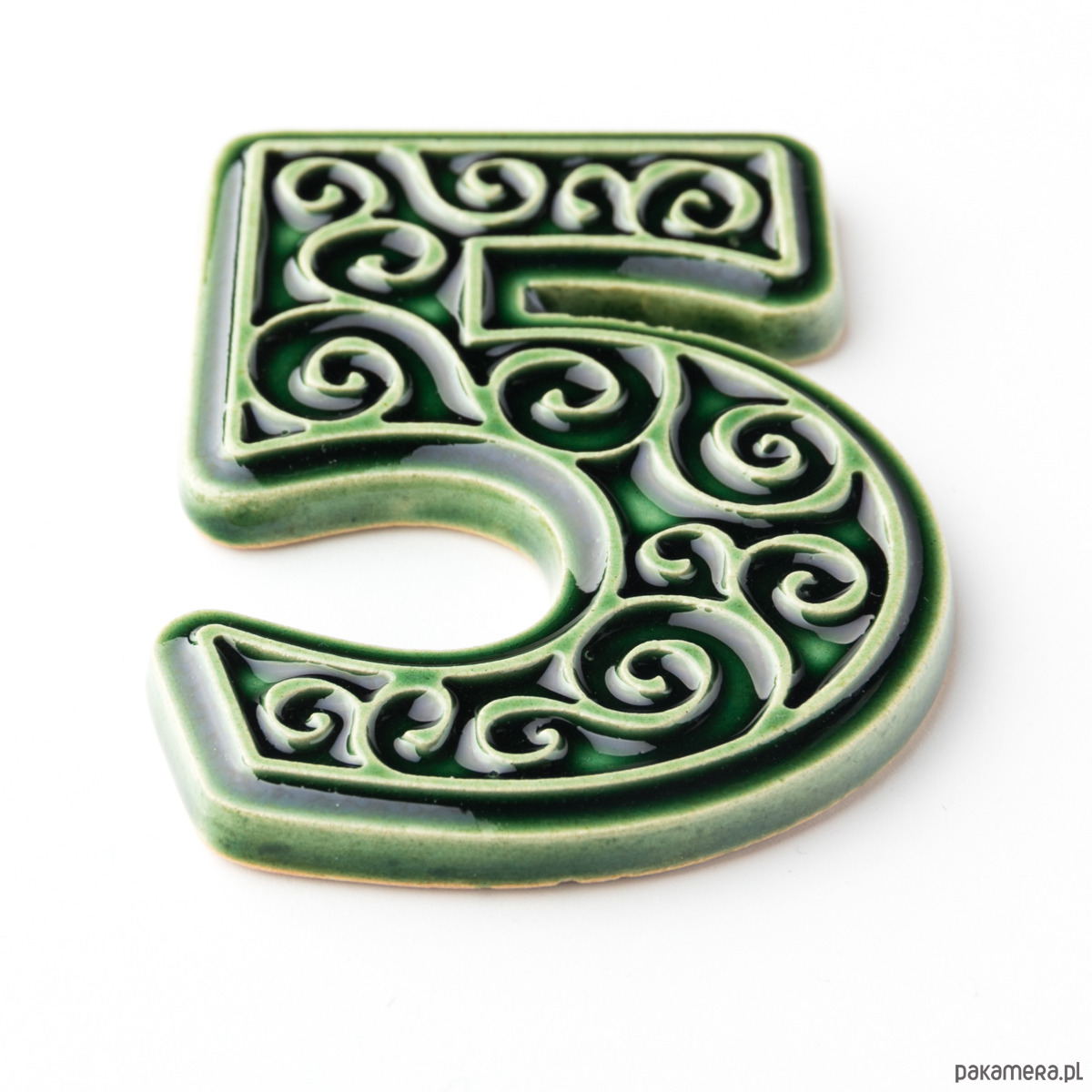 Numer mieszkania, cyfra 5 zieleń butelkowa, wysokość 8 cm