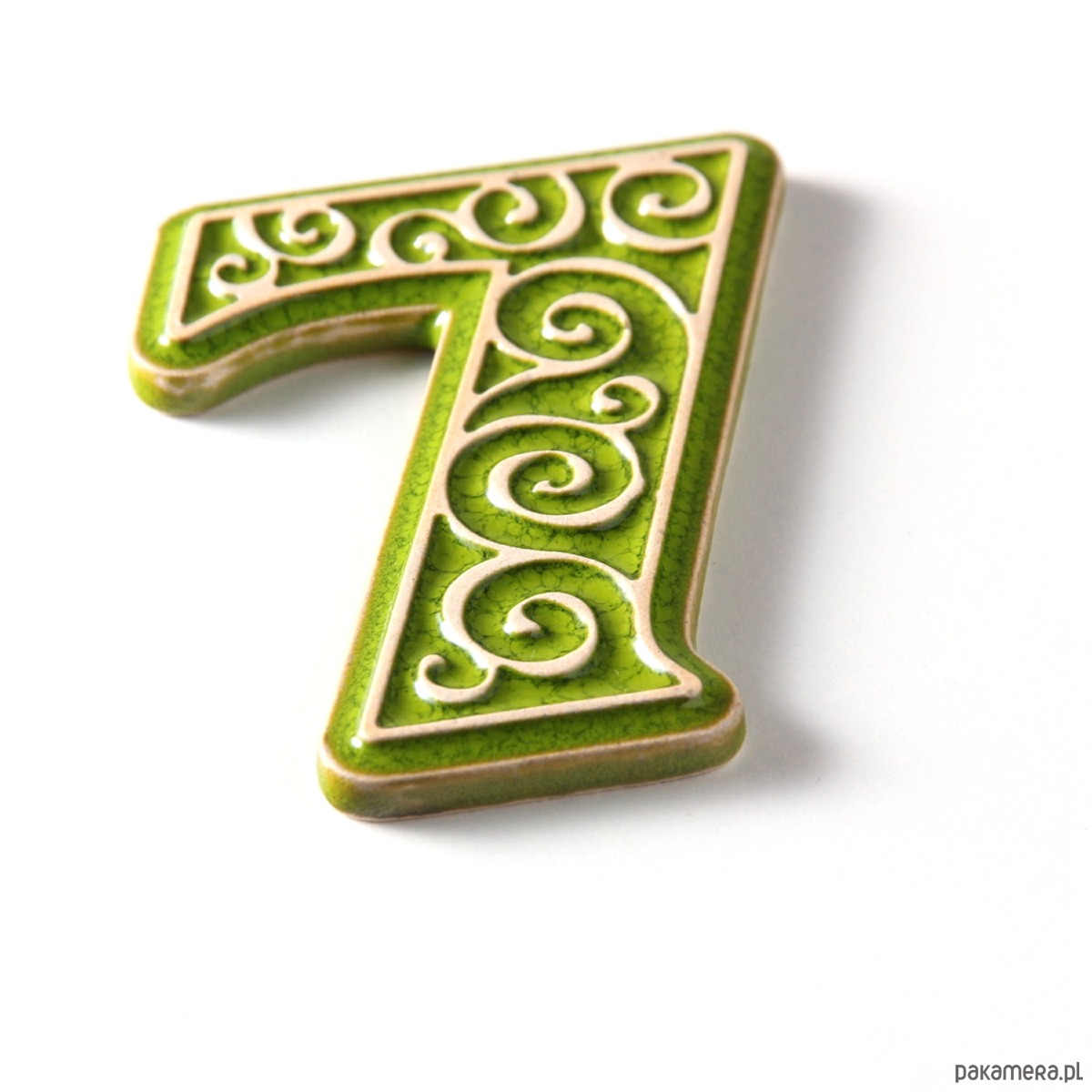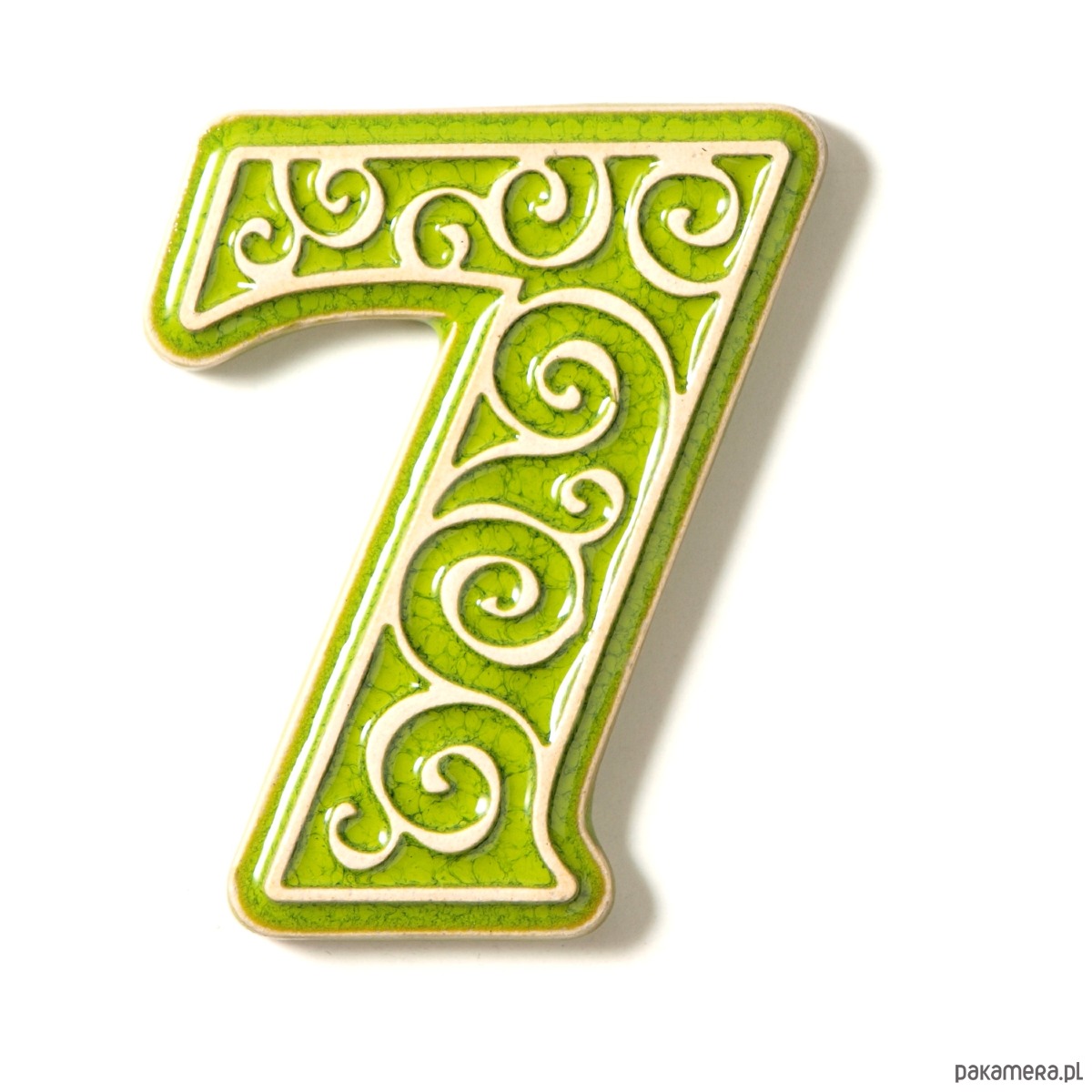 Numer mieszkania, cyfra 7 jasnozielona, wysokość 8 cm