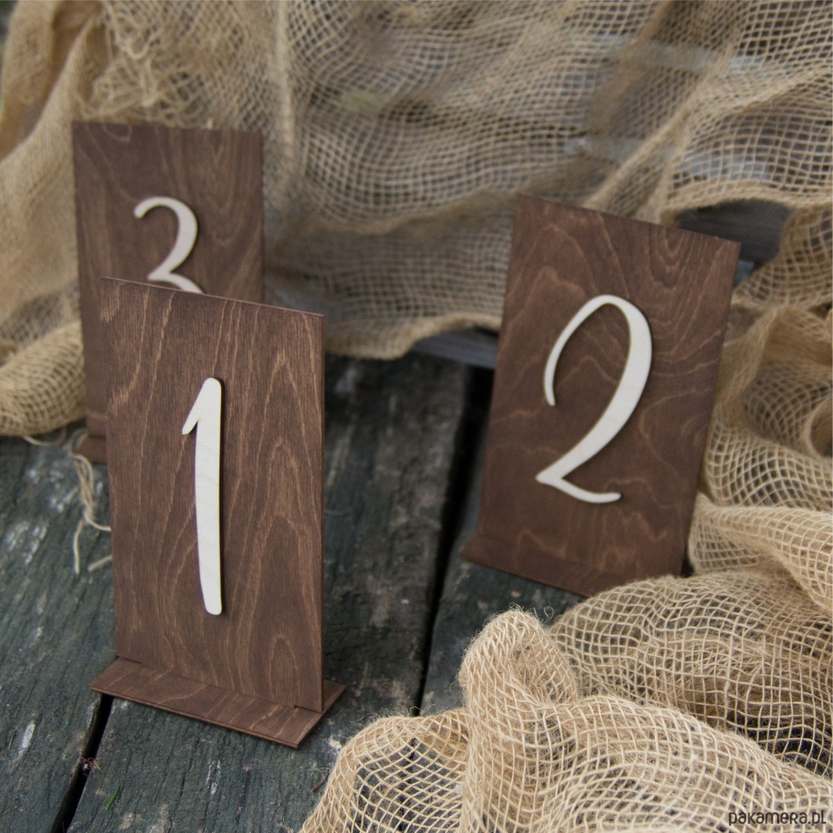 Numery na stół wesele ślub dąb ciemny