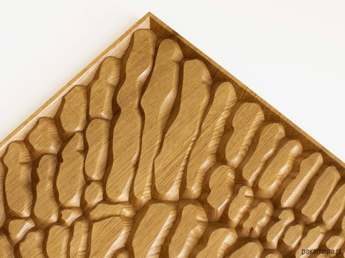 Do produkcji wykorzystujemy wyselekcjonowane drewno w najwyższej klasie. W rezultacie każdy drewniany panel charakteryzuje się unikalną teksturą, wzorem słojów i odcieniem, co dodaje mu uroku i charakteru. By zminimalizować naturalny efekt odkształcania się drewna, związany ze zmianami wilgotności, panele są wykonywane z połączonych ze sobą drewnianych lameli. Taki proces produkcji minimalizuje naturalną tendencje panelu do odkształcania się, nie można jednak całkowicie wyeliminować tego zjawiska.