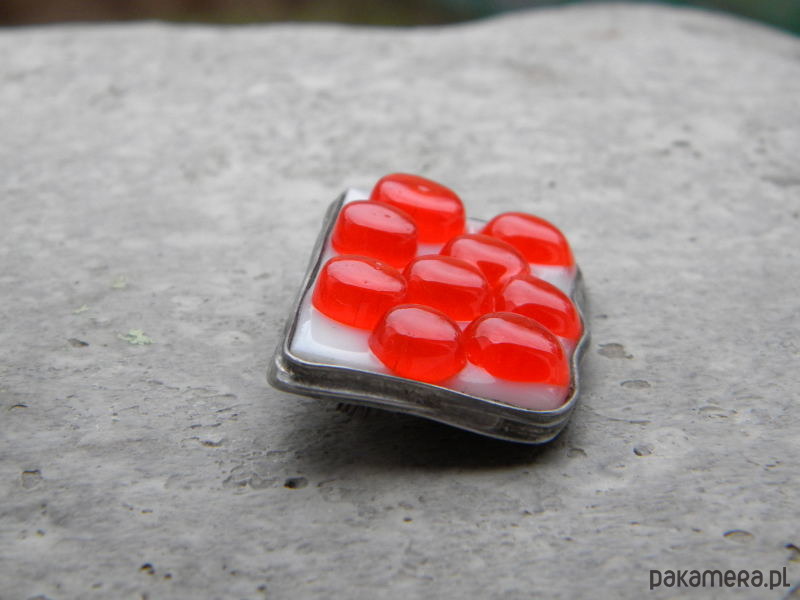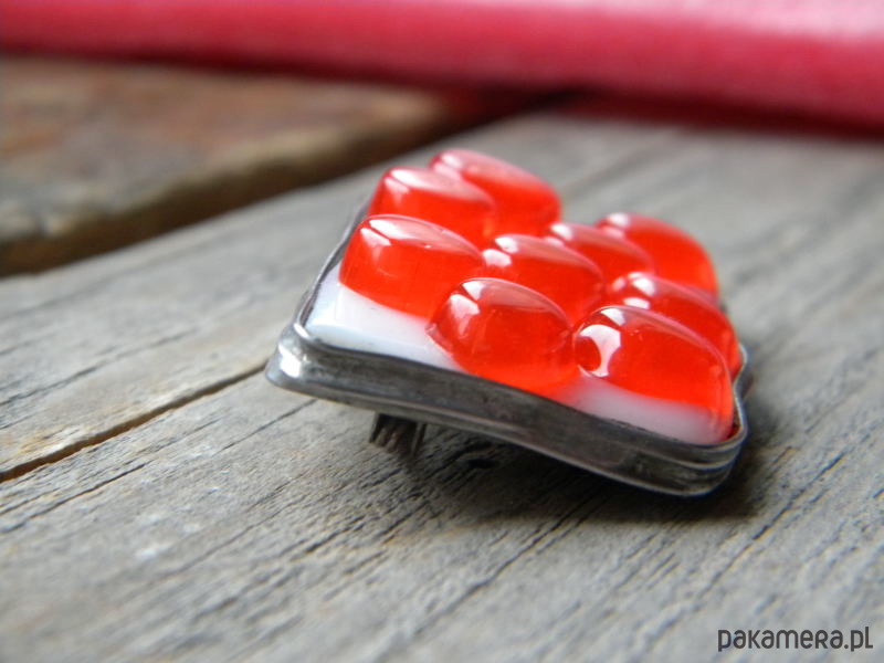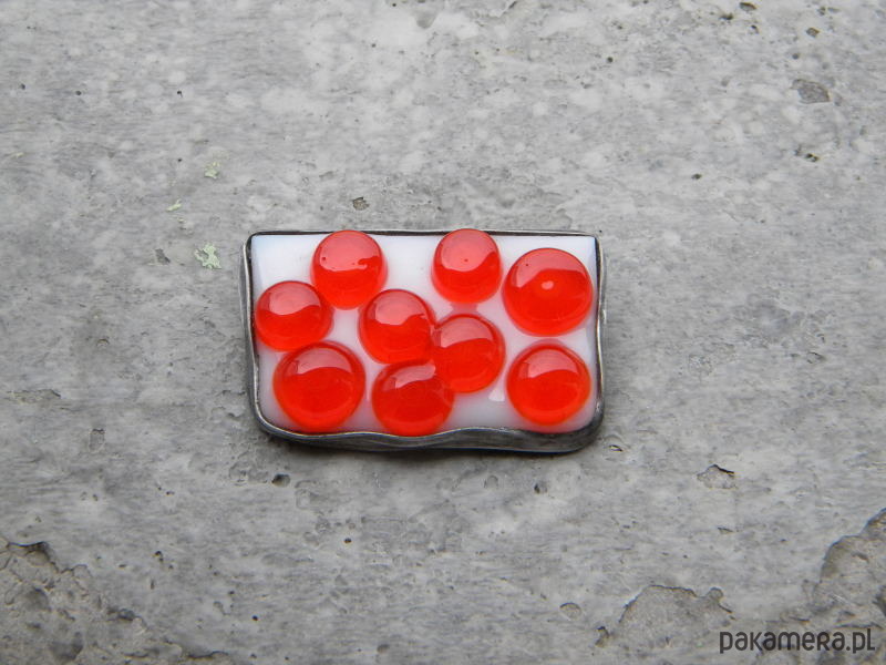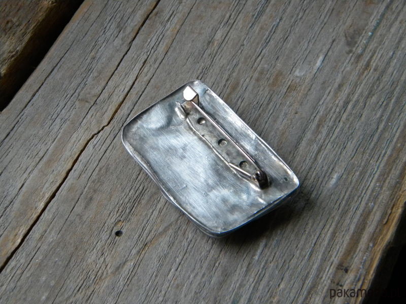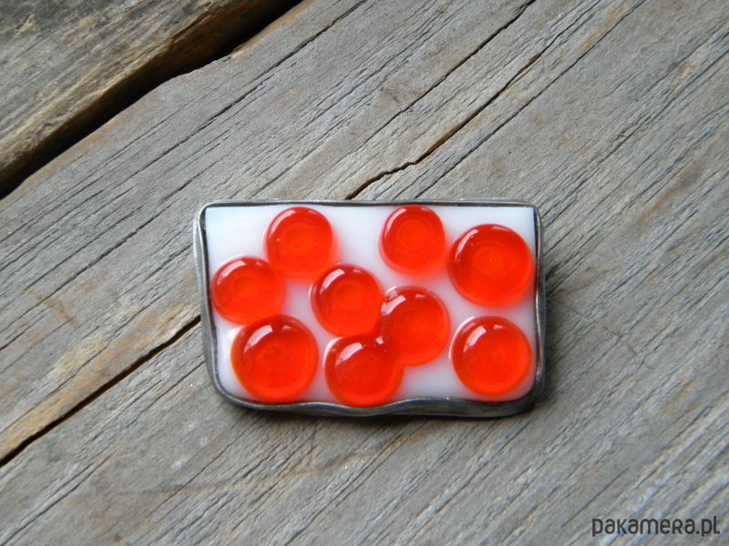 broszka ze szkła oprawionego w ocynowaną miedz.