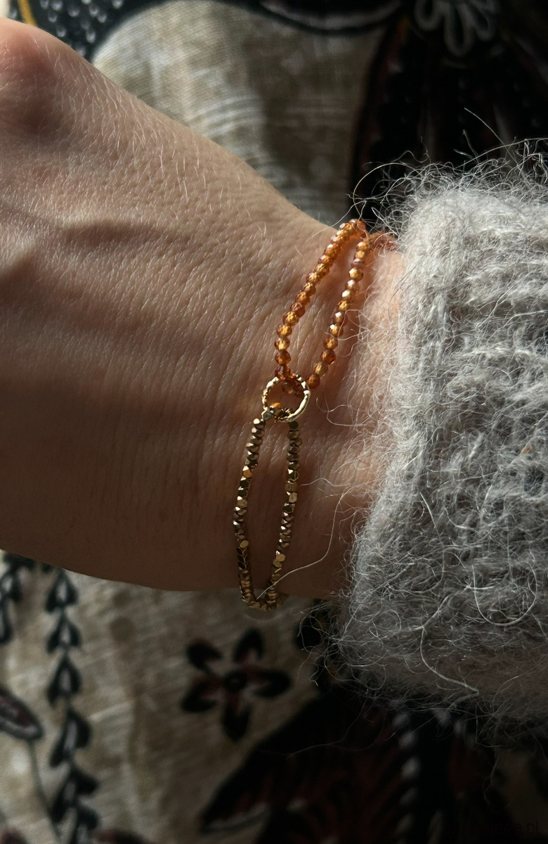 Pasuje na nadgarstek 16-17 cm, za sprawą łańcuszka . Długość całkowita ok. 21 cm