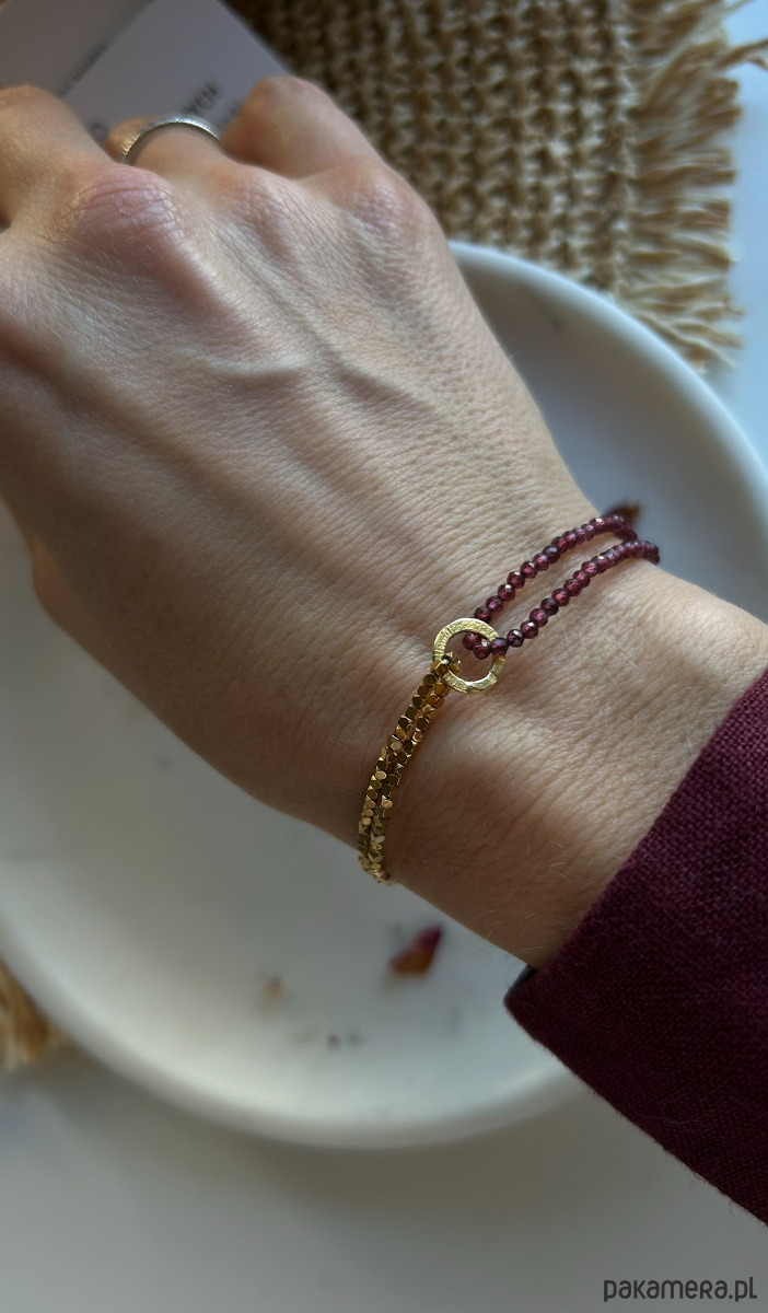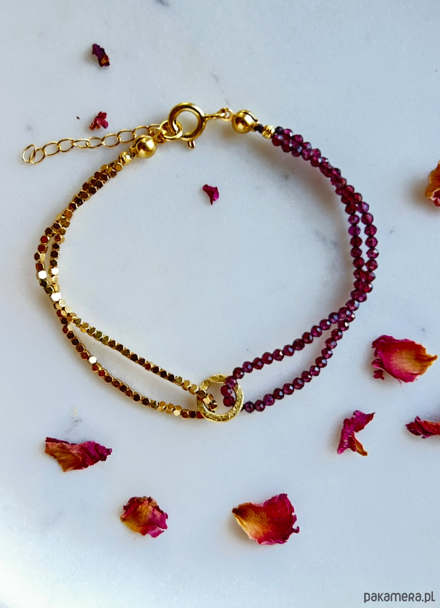 Granat wzmacnia pozytywne nastawienie do życia, przynosi dobrą energię, wzmacnia poczucie wewnętrznej harmonii. Aktywizuje nas do osiągnięcia dobrostanu, przyciąga obfitość i szczęcie w miłości. Pobudza do działania, wyzwala energię kreatywności. To również silny kamień ochronny.
