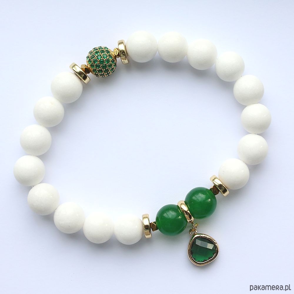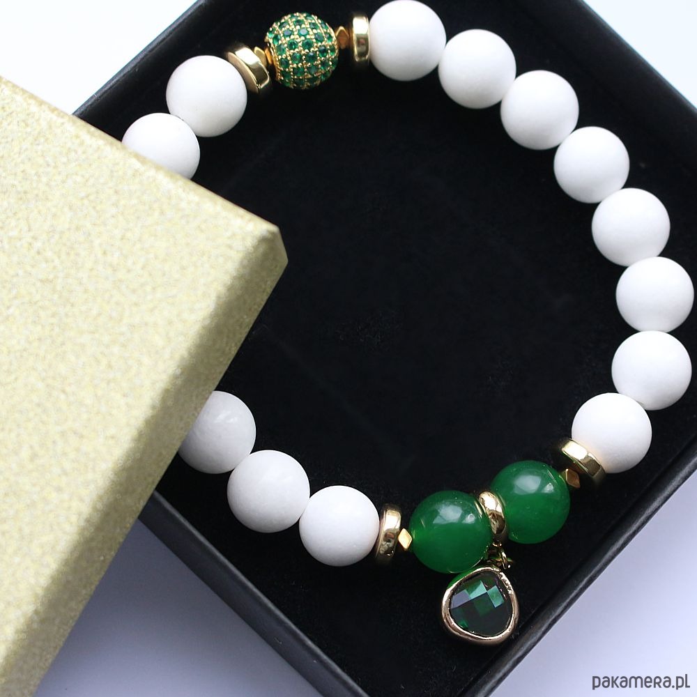 Energetyczna bransoletka z zielonym i białym jadeitem oraz hematytami.