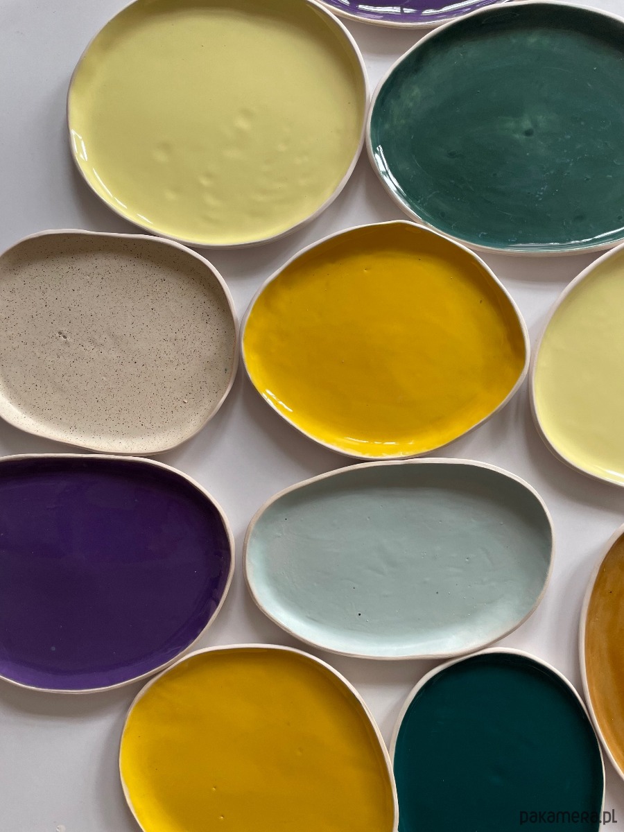 Talerze robione są ręcznie, każdy jest indywidualny. Nie ma dwóch takich samych. Zdjęcie poglądowe, kolory i kształty w rzeczywistości mogą się lekko różnić.