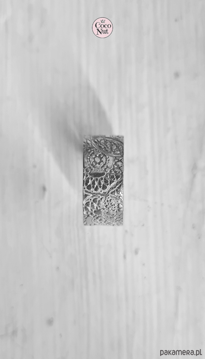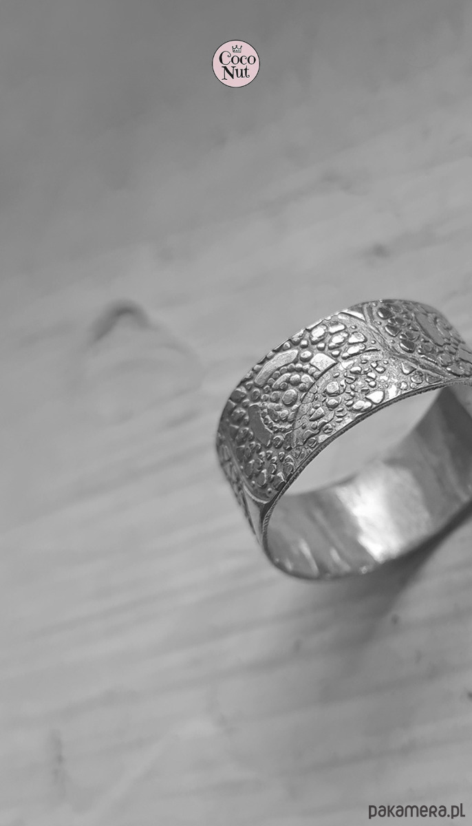 Obrączka ze srebra, szerokość ok. 8 mm, po zakupie prosimy podać rozmiar.