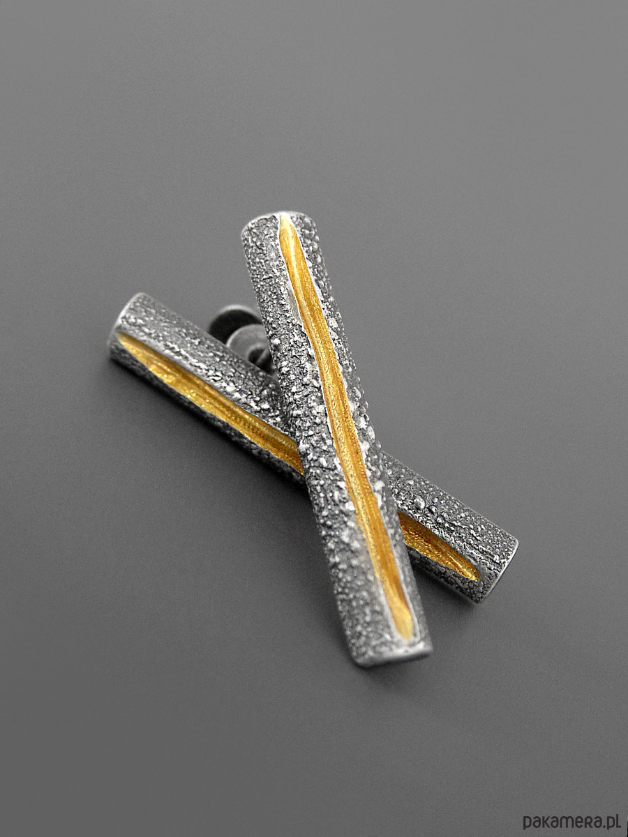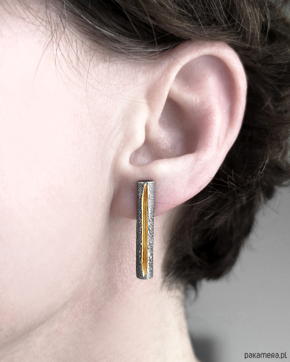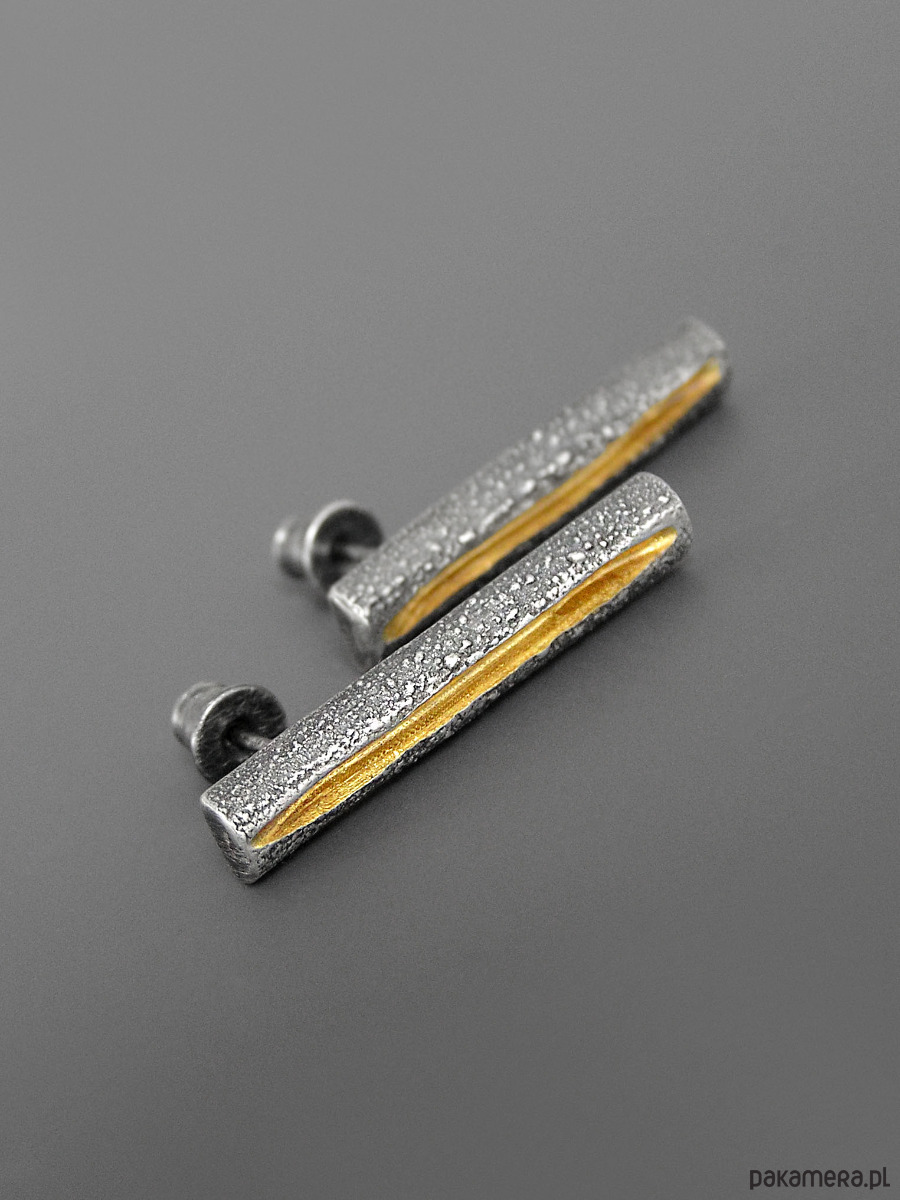 Unikatow kolczyki z linią biegnącą po środku, wykonana ze srebra 925 z unikatową flamowaną fakturą.