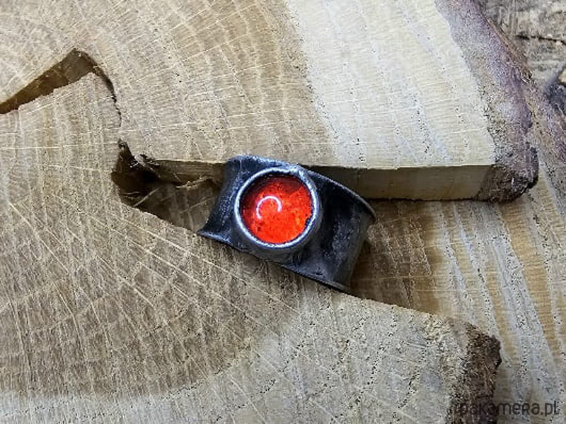 Obrączka z intensywnie czerwonym oczkiem, widering