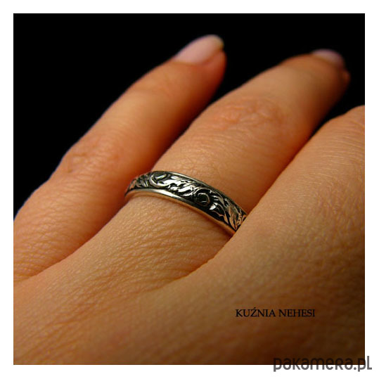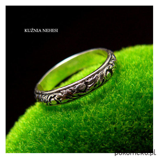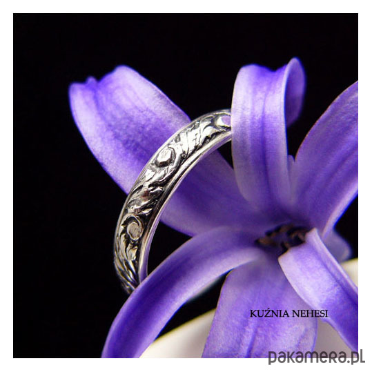 Śliczna obrączka z kolekcji ,, Z Ogrodu Elfów,, z pięknym motywem kwiatowym. Wykonana ze srebra próby 925 oksydowana, polerowana na wysoki połysk. Rozmiar na zamówienie. Po zakupie nie zapomnij napisać do mnie i podać rozmiaru obrączki.