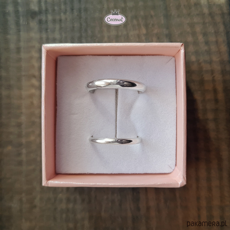 Wykonane ręcznie ze srebra 925/930. Szerokość ok. 2-3 mm. Jedna masywniejsza (większa), druga (mniejsza) cieńsza - ale mogą być tak samo szerokie, do uzgodnienia (w tej samej cenie).