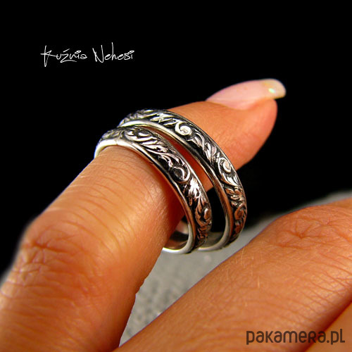 Ciekawe obrączki dla niej i niego z kolekcji ,, Z Ogrodu Elfów,, z pięknym motywem kwiatowym. Wykonane ze srebra 925 oksydowane, polerowane na wysoki połysk. Rozmiar na zamówienie. Po zakupie nie zapomnij napisać do mnie i podać swój rozmiar :)