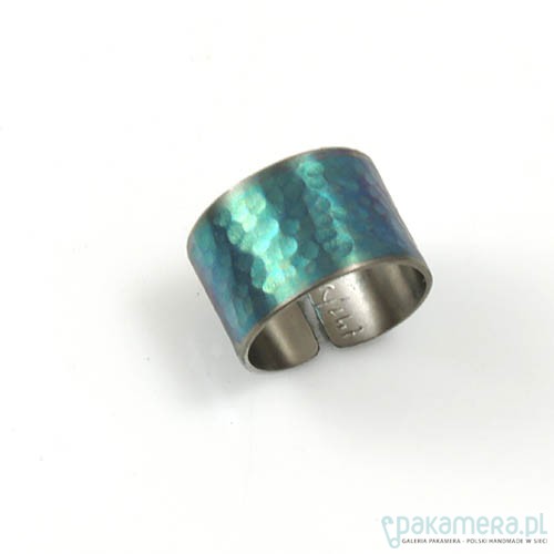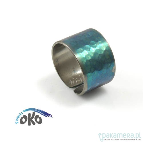 Nowoczesna obrączka zrobiona ręcznie z tytanu anodowanego(pokrytego tlenkami metodą elektro-chemiczną).Obrączka jest niezwykle trwała a kolory pozostają "żywe" przez lata.lekka i wygodna w noszeniu.Sygnowana wygrawerowanym podpisem.Mogę wykonać podobną w innym rozmiarze.Rozmiar 18,szerokość 1,3 cm.