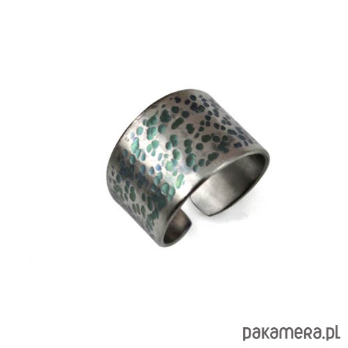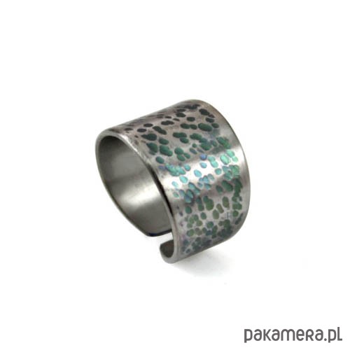 Szeroka ,lekka obrączka zrobiona ręcznie w całości z anodowanego tytanu. W odcieniach zieleni.Bardzo wygodna w noszeniu i trwała.Sygnowana wygrawerowanym autografem. Wymiary-regulowana-wyjściowo Rozmiar jubilerski: EU- #14/GR- #N Wewnętrzna średnica:17,0 mm Szerokość ; 1,4 cm Waga:2,0 grama .Wykonam podobną w innym rozmiarze.Wykorzystane materiały Tytan jest niezwykle lekkim i trwałym metalem który nie wywołuje żadnych alergii-jest hipoalergiczny- stosowany w chirurgii i stomatologii. Odporny na działanie chemikaliów. Anodowany pokrywa się trwałymi tlenkami.