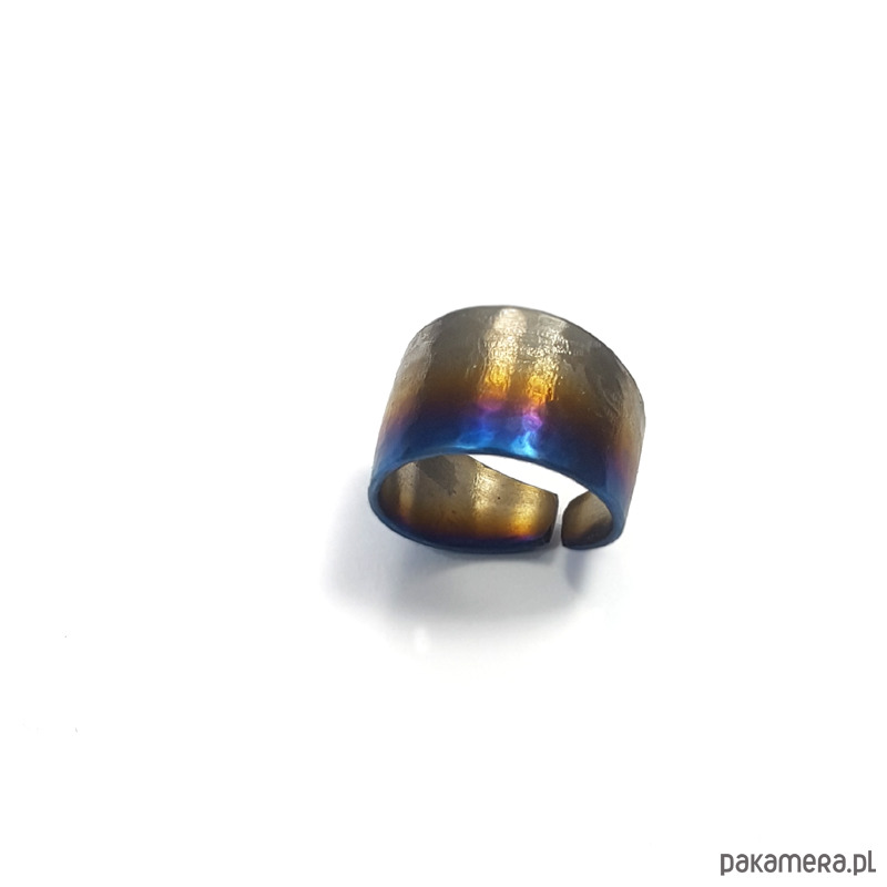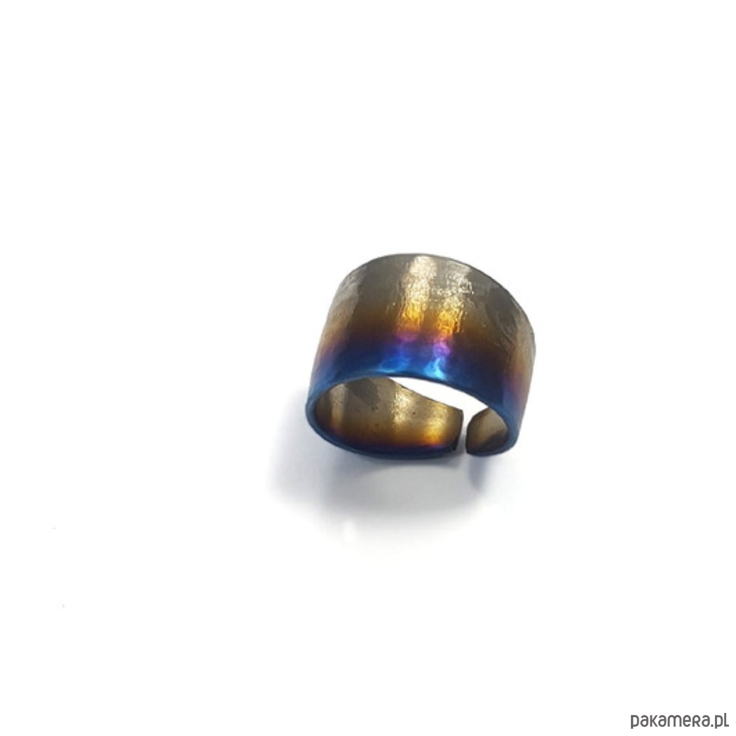 Obrączka wykonana w całości ręcznie z anodowanego tytanu. Repusowana i satynowana powierzchnia mieni się odcieniami żółtego i niebieskiego. Obrączka jest szerokości 1,4 cm a rozmiar dostosuję do życzenia ,wystarczy w uwagach zapisać jaki rozmiar jest właściwy. Bardzo lekka i niezwykle trwała. Sygnowana wygrawerowanym autografem. Mogę wysłać kurierem lub do paczkomatu.Tytan jest niezwykle lekkim i trwałym metalem który nie wywołuje żadnych alergii-jest hipoalergiczny- stosowany w chirurgii i stomatologii. Odporny na działanie chemikaliów. Anodowany pokrywa się trwałymi tlenkami.