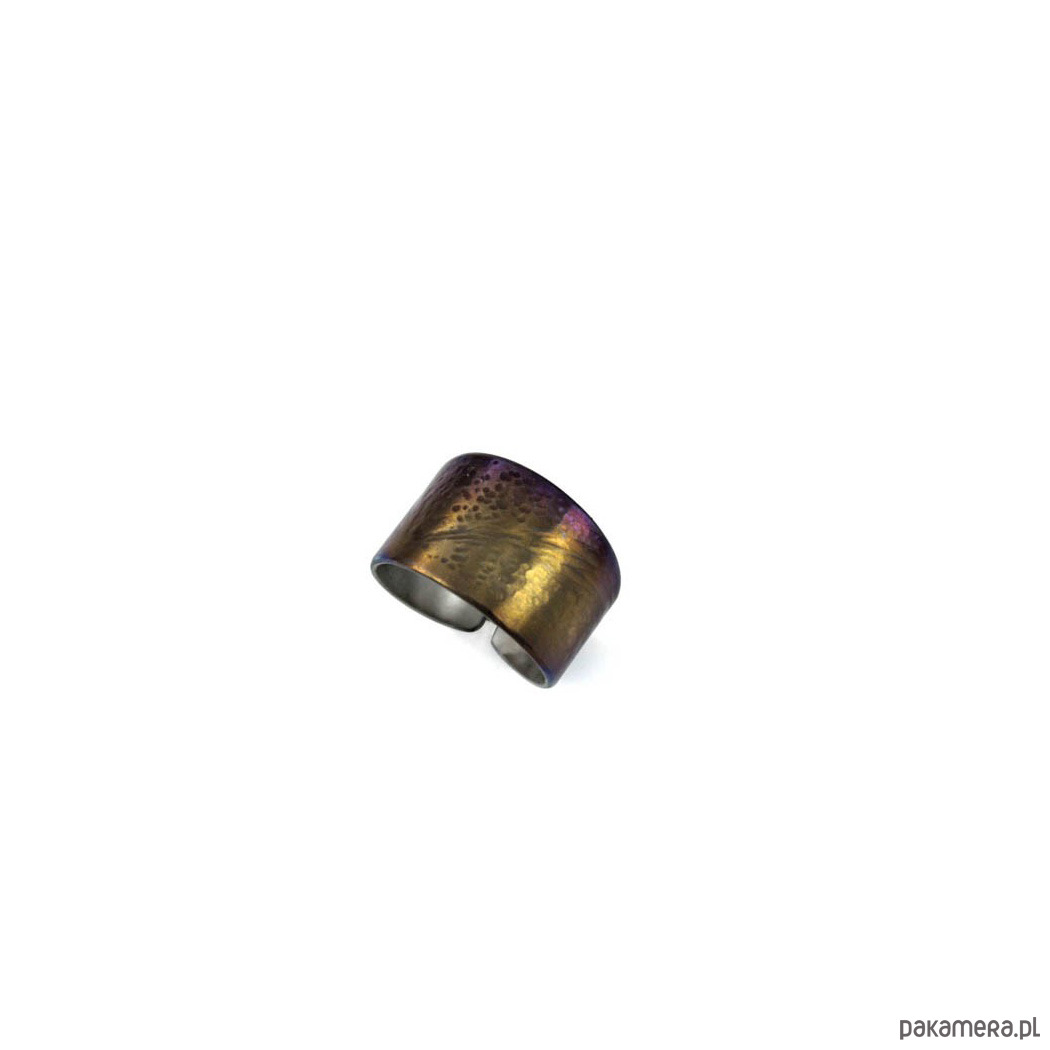 Szeroka ,lekka obrączka zrobiona ręcznie w całości z anodowanego tytanu. W odcieniach zieleni.Bardzo wygodna w noszeniu i trwała.Sygnowana wygrawerowanym autografem. Wymiary-regulowana-wyjściowo Rozmiar jubilerski: EU- #16/GR- # O Wewnętrzna średnica:17,6 mm Szerokość ; 1,4 cm Waga:2,0 grama .Wykonam podobną w innym rozmiarze! Wykorzystane materiały Tytan jest niezwykle lekkim i trwałym metalem który nie wywołuje żadnych alergii-jest hipoalergiczny- stosowany w chirurgii i stomatologii. Odporny na działanie chemikaliów. Anodowany pokrywa się trwałymi tlenkami.