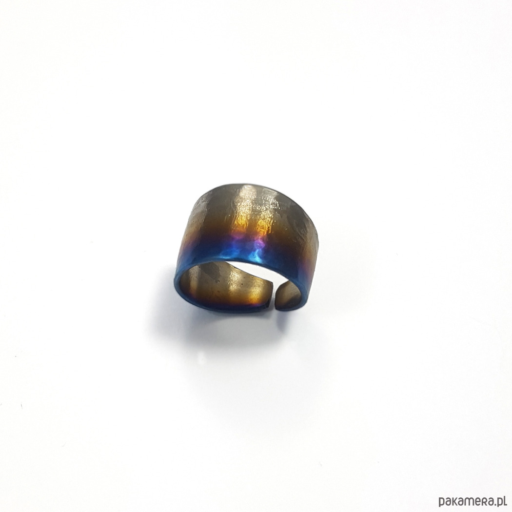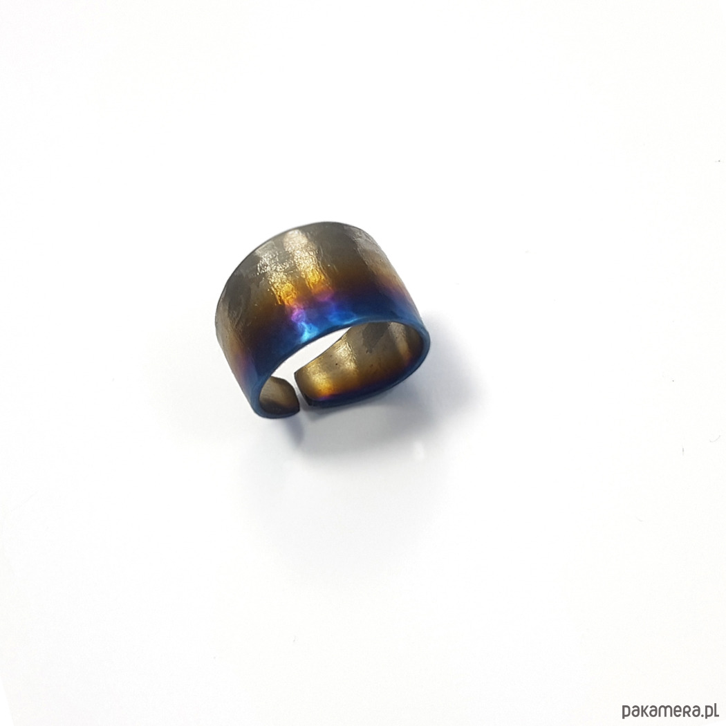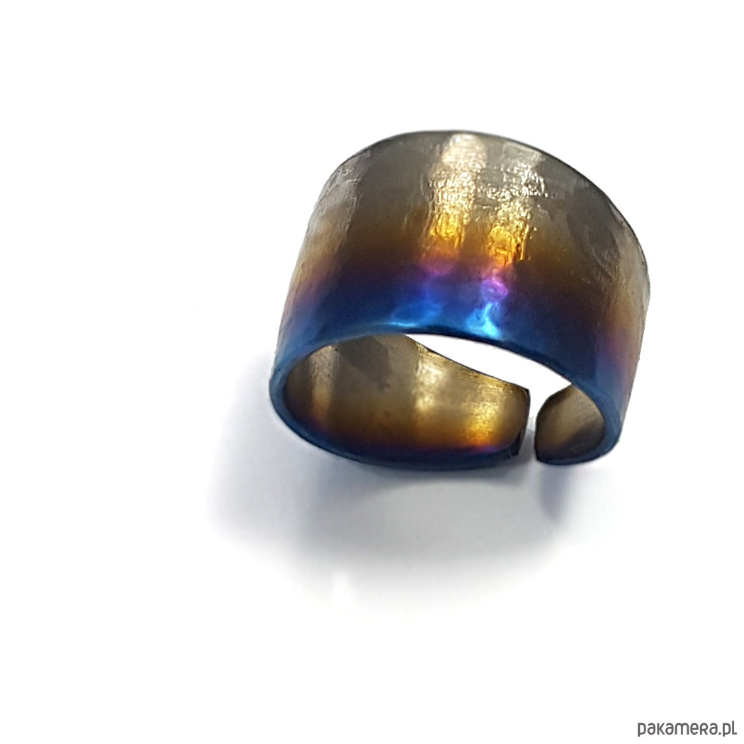Szeroka ,lekka obrączka zrobiona ręcznie w całości z anodowanego tytanu. Bardzo wygodna w noszeniu i trwała.Sygnowana wygrawerowanym autografem. Wymiary-regulowana-wyjściowo Rozmiar jubilerski: EU- #14/GR- #N Wewnętrzna średnica:17,0 mm Szerokość ; 1,4 cm Waga:2,0 grama . Proszę zwrócić uwagę na to że obrączkę można jedynie nieco dopasować.Proszę zapisać w uwagach rozmiar, wykonam podobną w innym w takim rozmiarze.Wykorzystane materiały Tytan jest niezwykle lekkim i trwałym metalem który nie wywołuje żadnych alergii-jest hipoalergiczny- stosowany w chirurgii i stomatologii. Odporny na działanie chemikaliów. Anodowany pokrywa się trwałymi tlenkami.