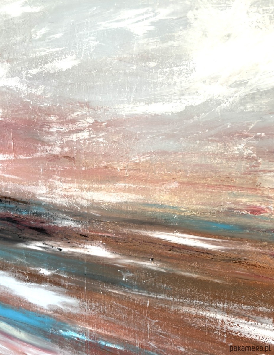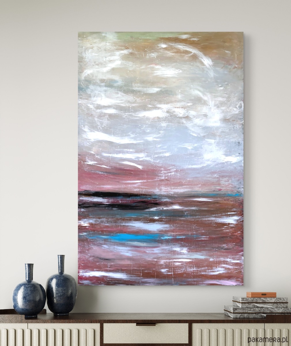 Abstrakcyjny obraz 90 na 140cm inspirowany pejzażem.