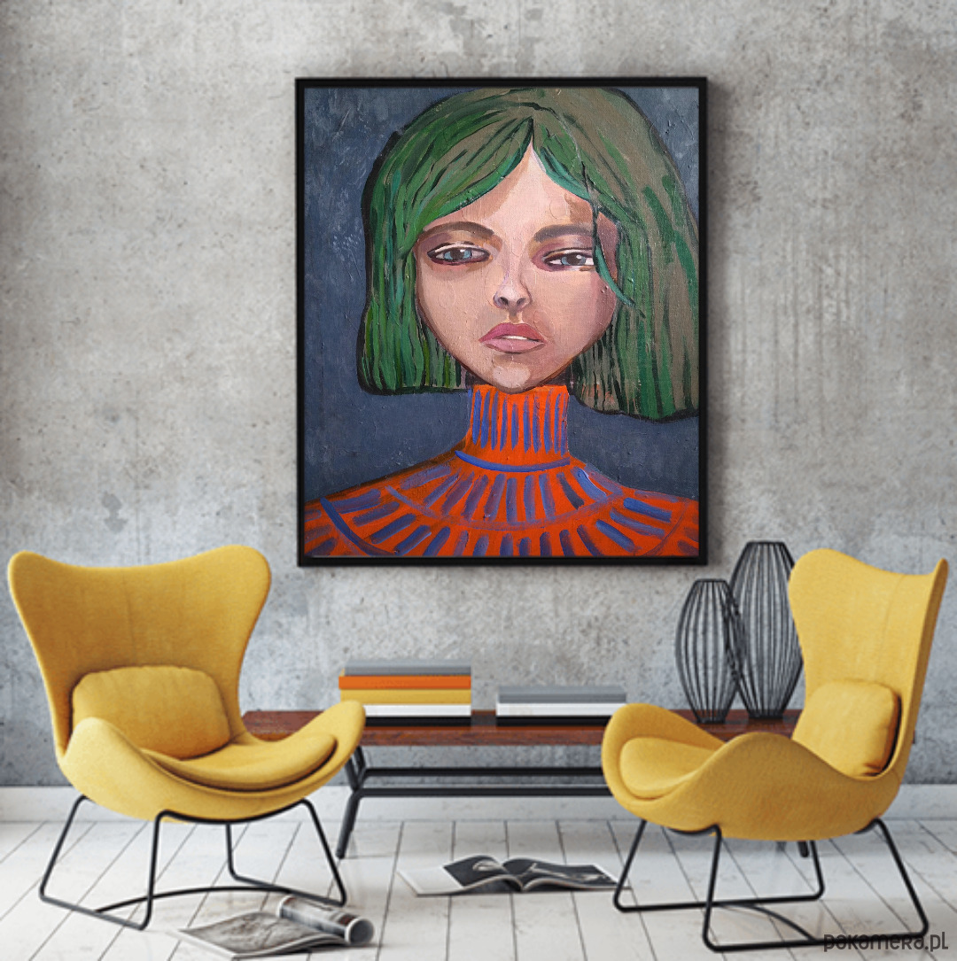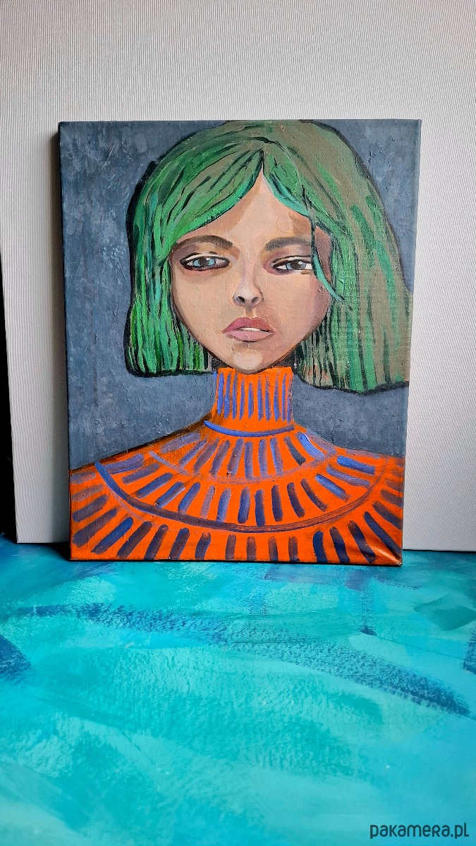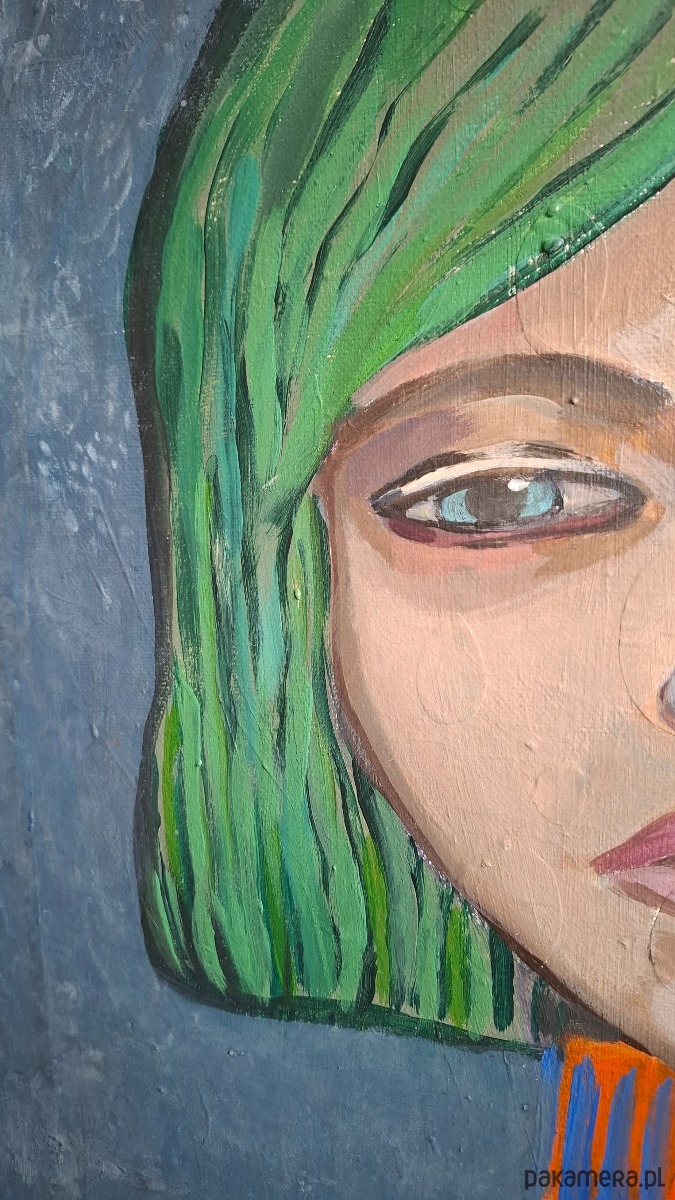 Seria „Wibracje” to cykl portretów kobiecych, w których zmysłowość i zaduma spotykają się z rytmem koloru i formy. Każda z postaci pulsuje własną energią — uchwyconą w liniach, fakturze i świetlistych punktach tła.