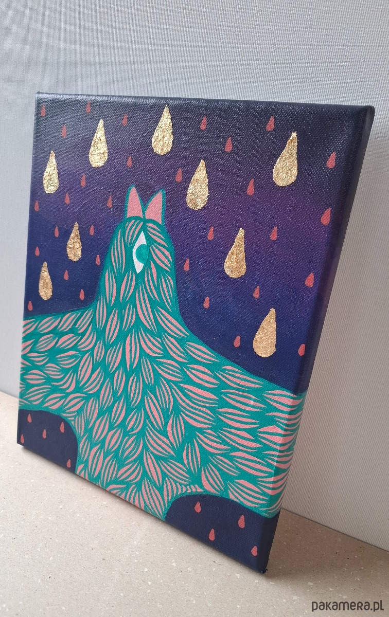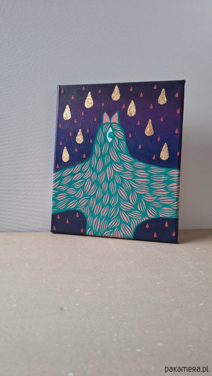 Akrylowy obraz ze złoceniami.