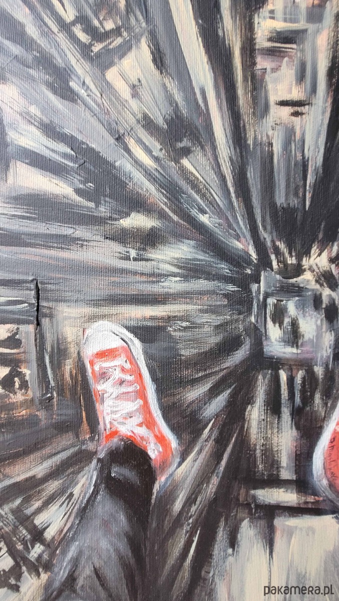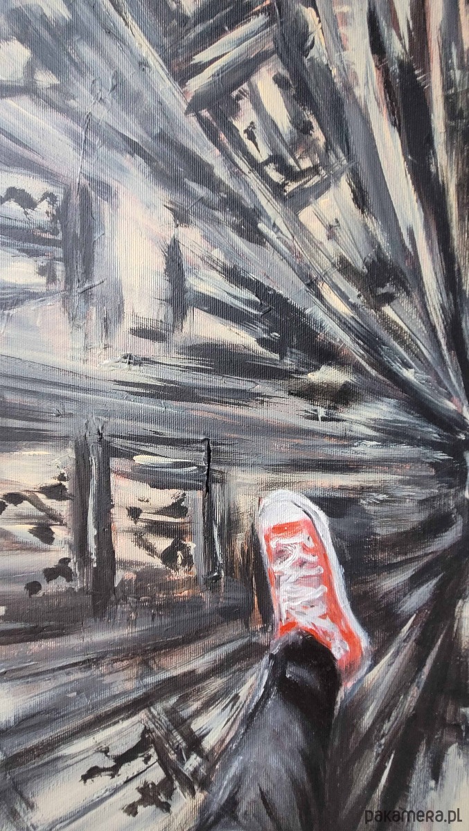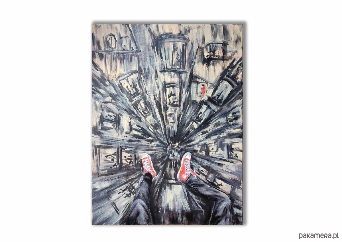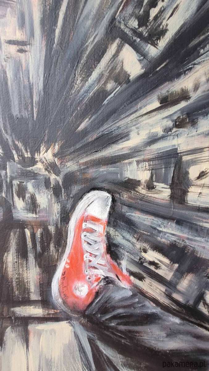 Obraz akrylowy ręcznie malowany 60x80 cm "Trampki nad miastem"