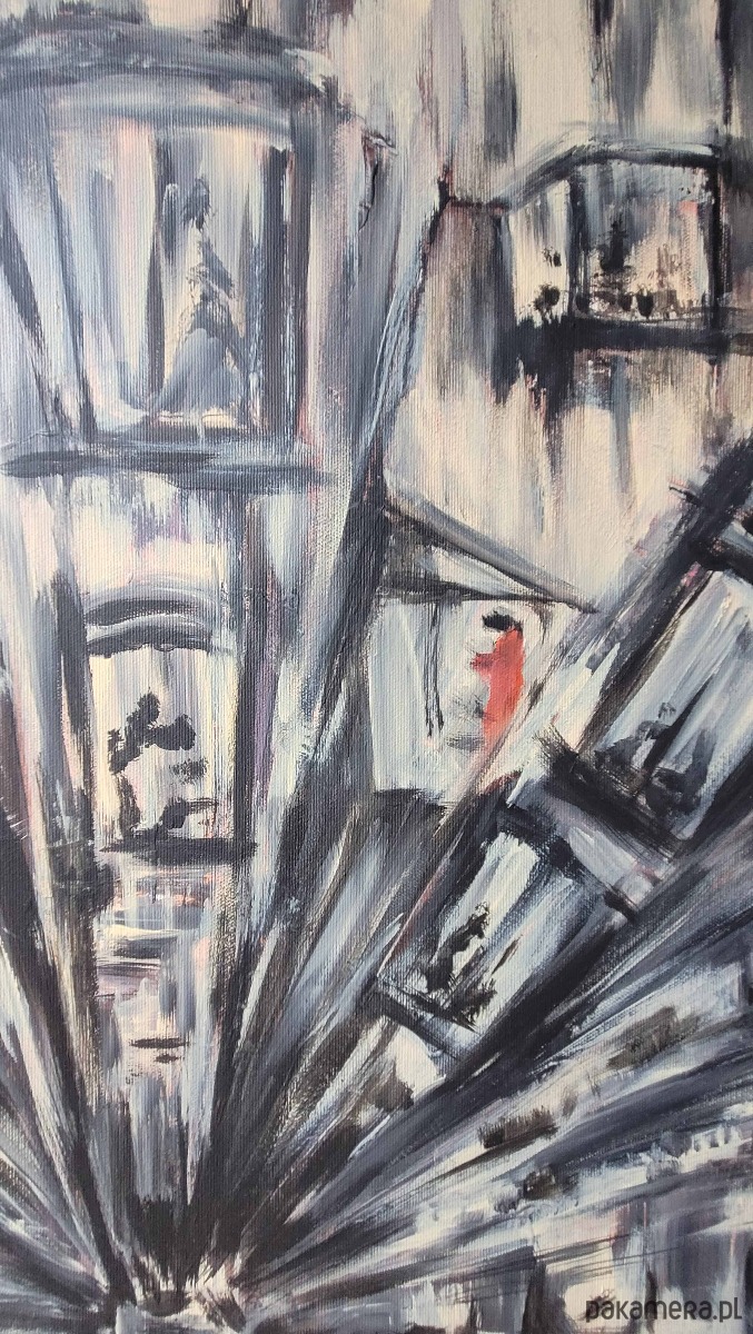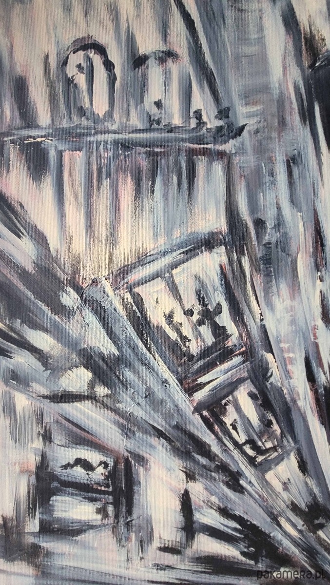 Obraz akrylowy ręcznie malowany farbami akrylowymi na bawełnianym płótnie.
