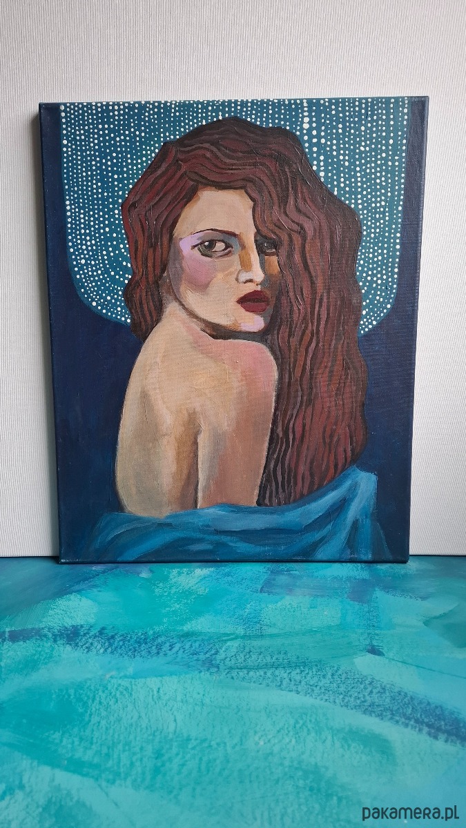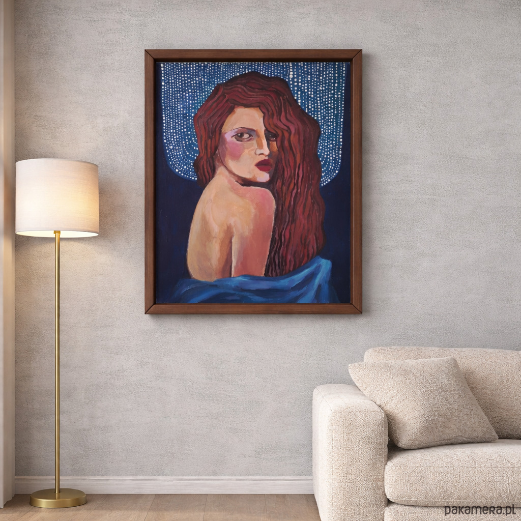 Seria „Wibracje” to cykl portretów kobiecych, w których zmysłowość i zaduma spotykają się z rytmem koloru i formy. Każda z postaci pulsuje własną energią — uchwyconą w liniach, fakturze i świetlistych punktach tła.