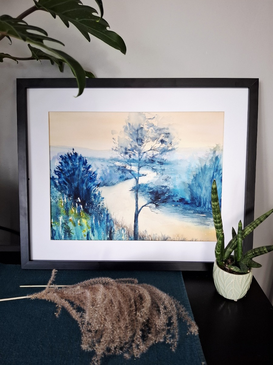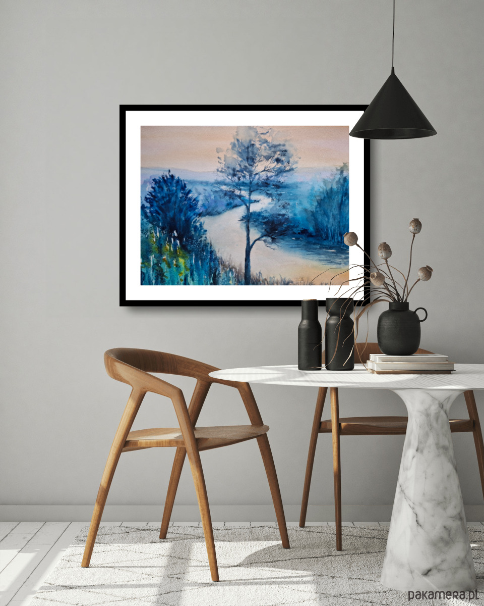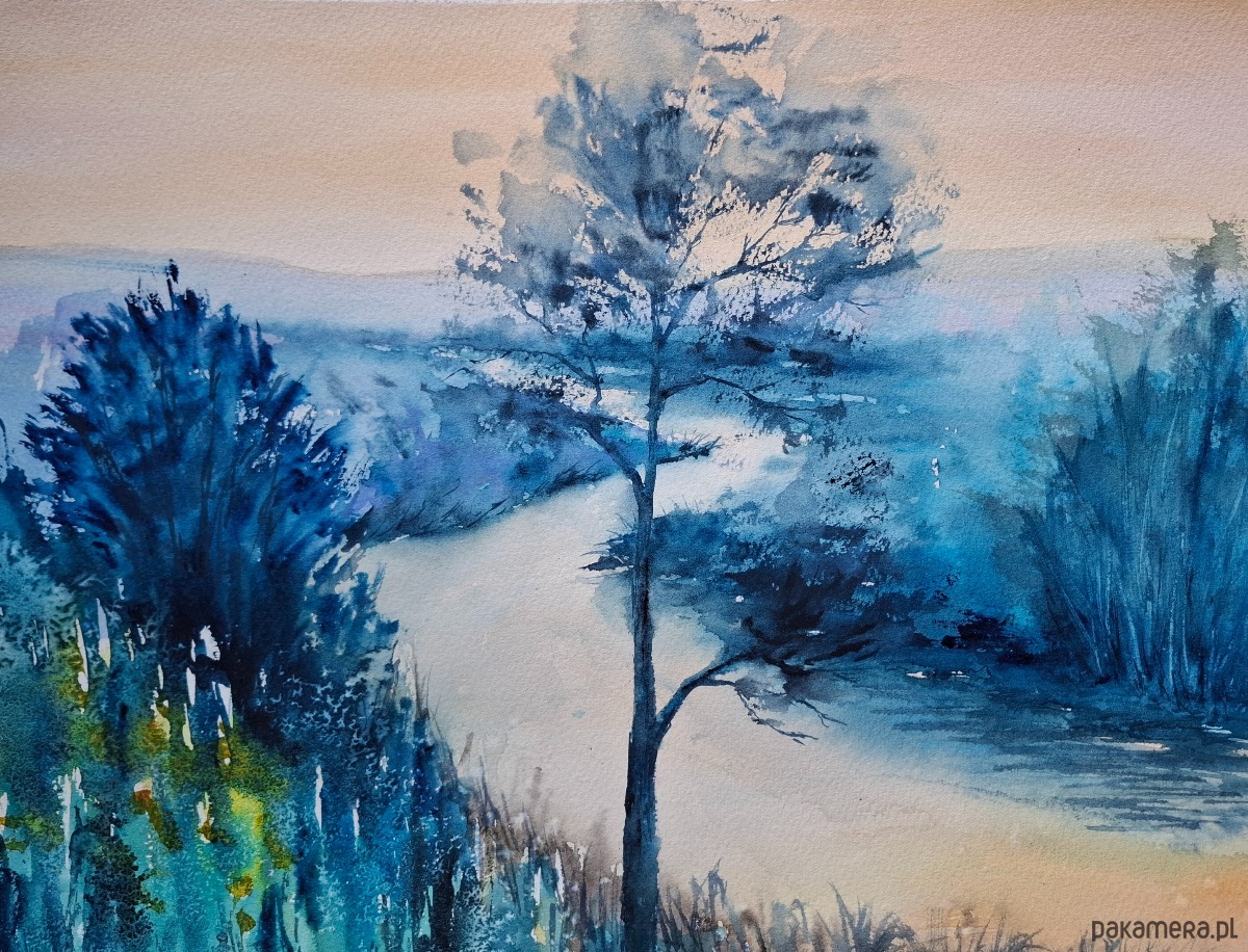 Obraz akwarelowy Niebieski Pejzaż 40x30 cm