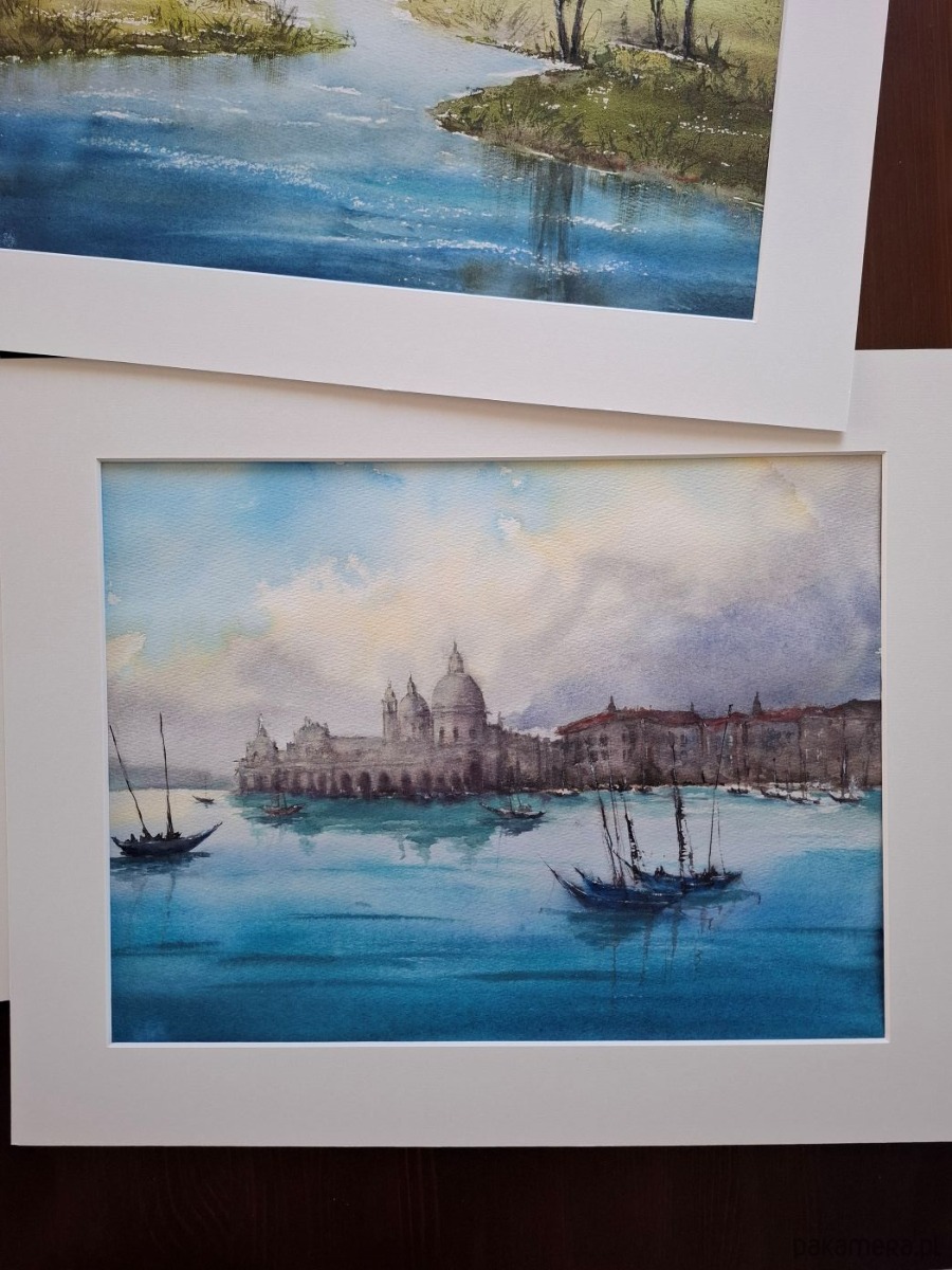 Obraz akwarelowy "Wenecja III/2026" oprawiony w passe-partout 40x50 cm