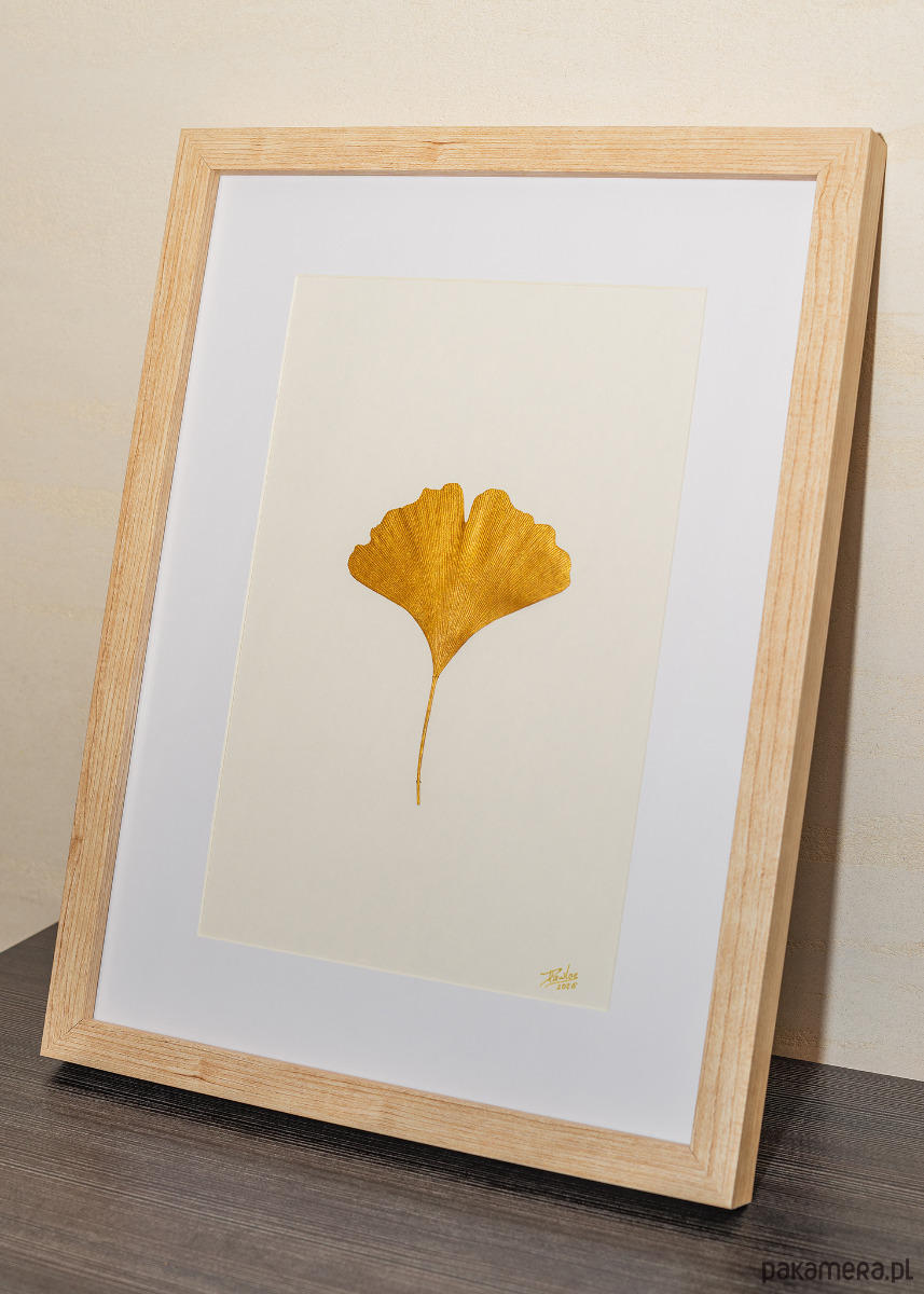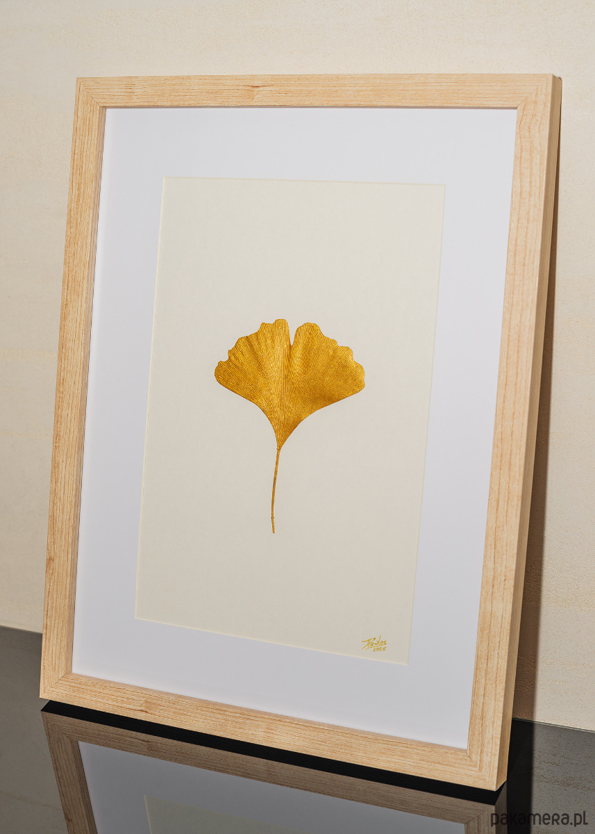 Obraz Botaniczny 3D Premium. Złoty Liść Miłorzębu 30x40cm. Modern Wall Art