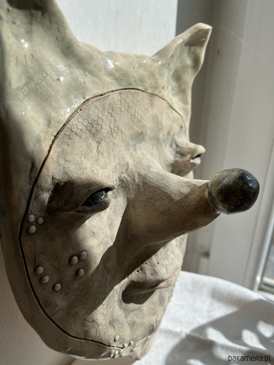Obraz ceramiczny, płaskorzeźba, twarz, maska (do zawieszenia na ścianie)