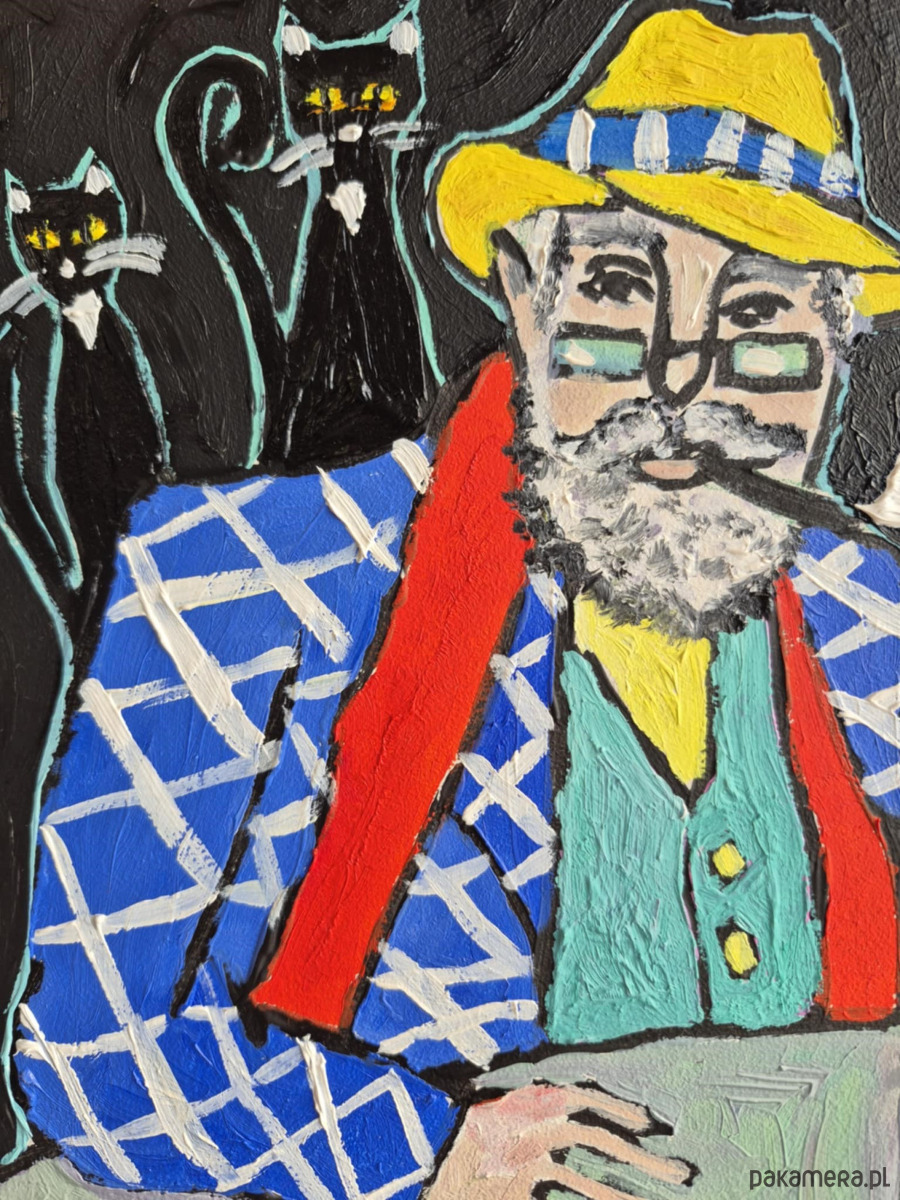 Obraz do salonu portret dziadka czarne koty wiedzą więcej