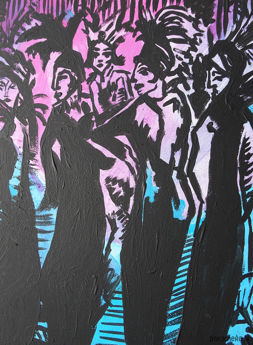 Obraz namalowany akrylami na płycie o wymiarach: a4, 21/29,7 cm, sygnowany z przodu. Jest to moja autorska kompozycja. Świetnie może być eksponowany w nowoczesnych wnętrzach o stonowanej kolorystyce. Swoimi barwami może rozjaśnić takie wnętrza, w oświetleniu dziennym, jak i sztucznym.