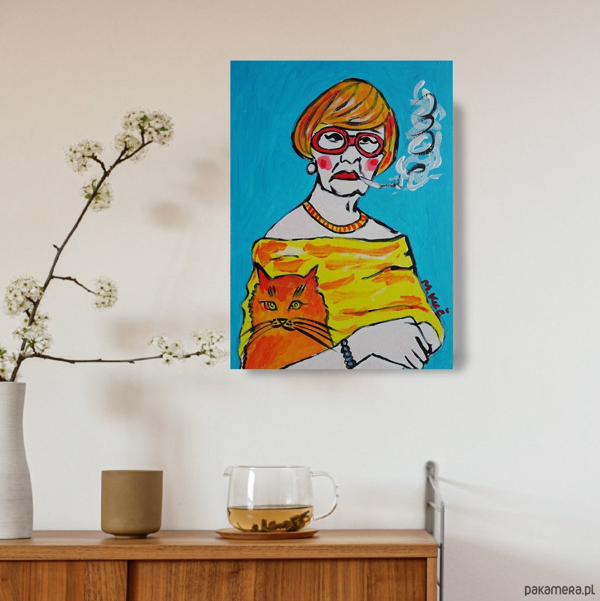 Obraz namalowany akrylami na płycie o wymiarach: a4, 21/29,7 cm, sygnowany z przodu. Jest to moja autorska kompozycja. Świetnie może być eksponowany w nowoczesnych wnętrzach o stonowanej kolorystyce. Swoimi barwami może rozjaśnić takie wnętrza, w oświetleniu dziennym, jak i sztucznym.