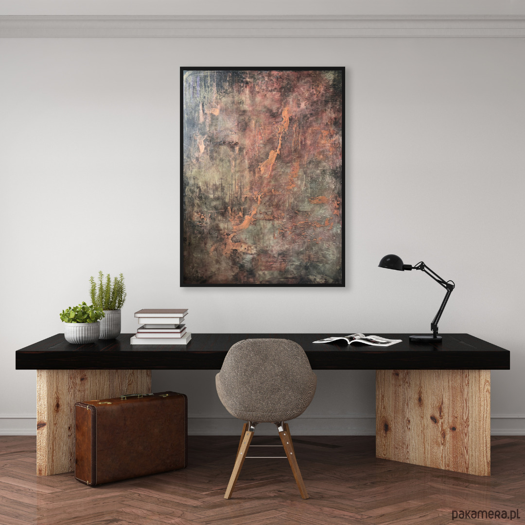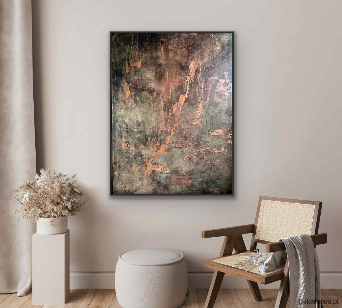 Miedziane wykończenie obrazu dodaje mu szlachetności.