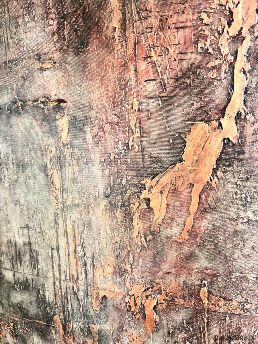 Największym atutem tego obrazu jest jego struktura, która przywołuje na myśl blizny, zadrapania i otarcia wywołane przez doświadczenia przeszłości.